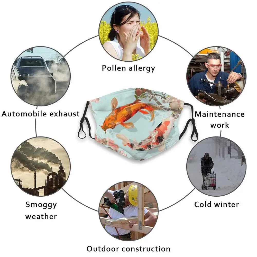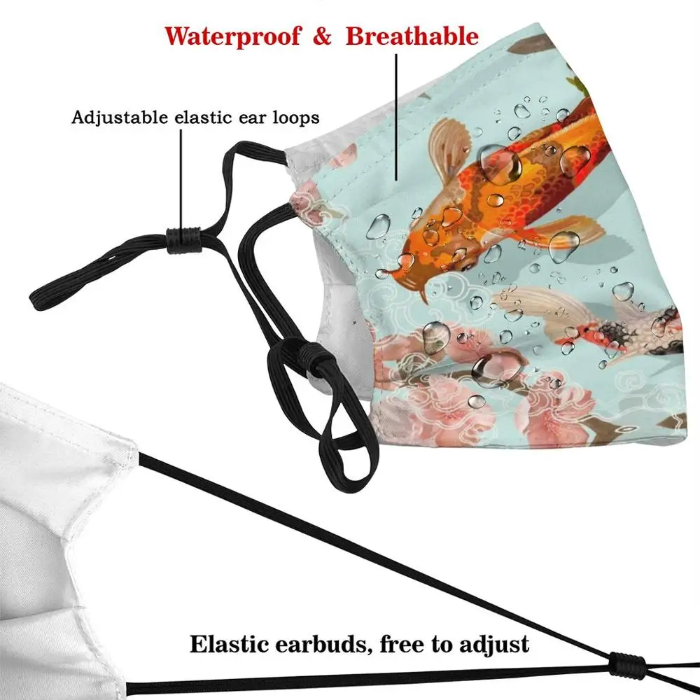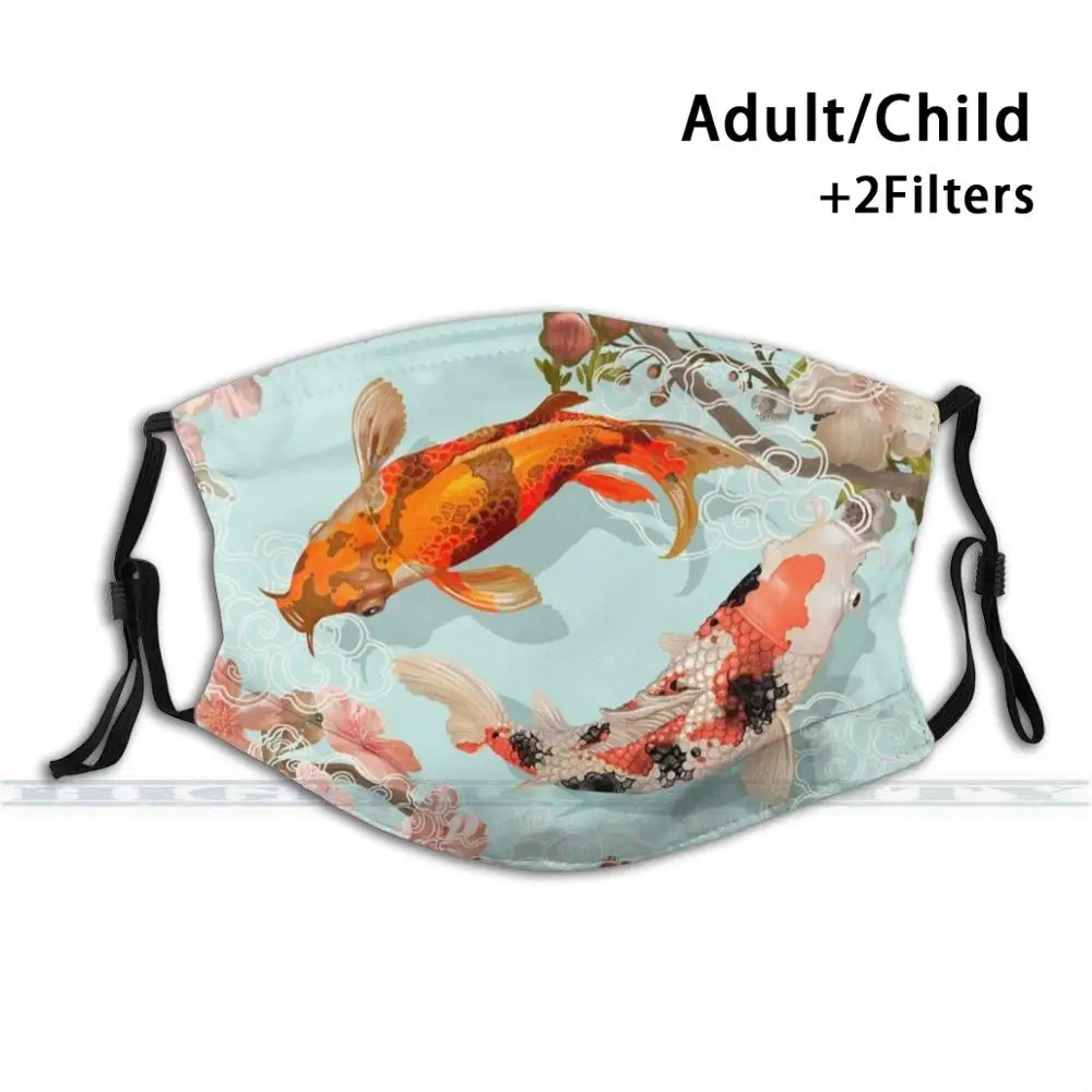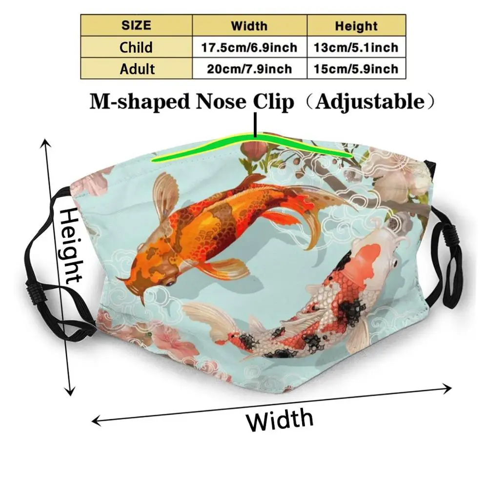 Красивая японская маска Koi Fish с индивидуальным дизайном для детей и взрослых, Пылезащитный фильтр с принтом в виде зеленой рыбы, японская