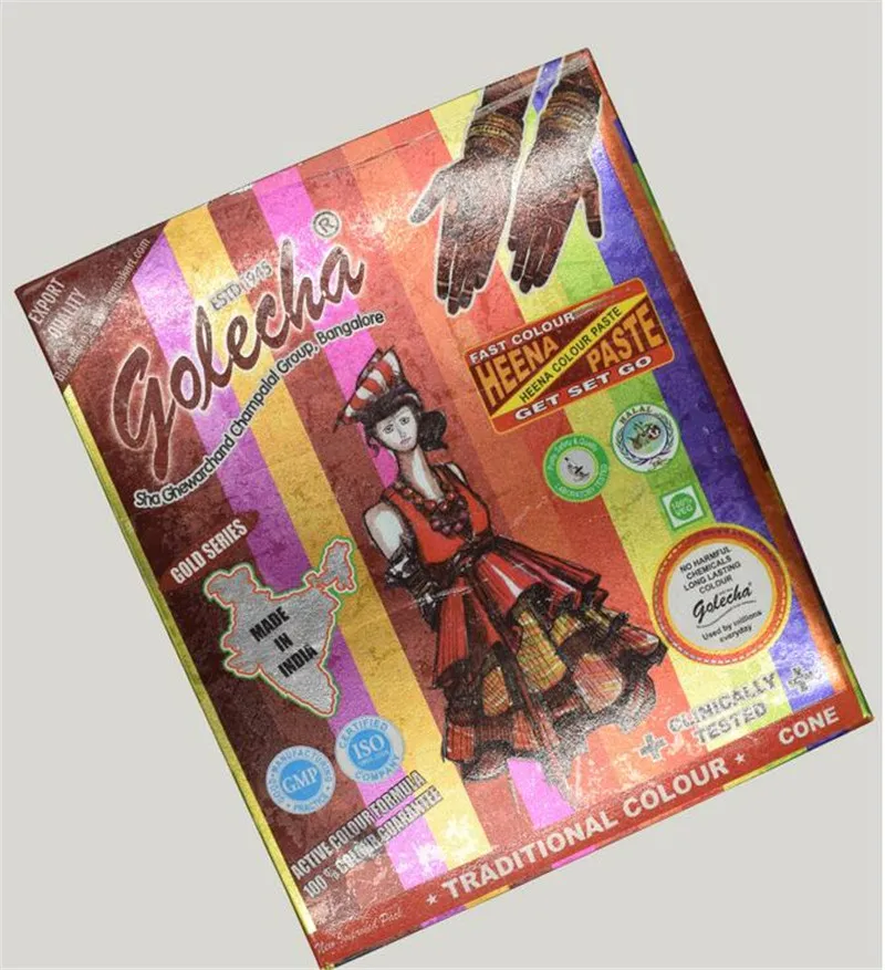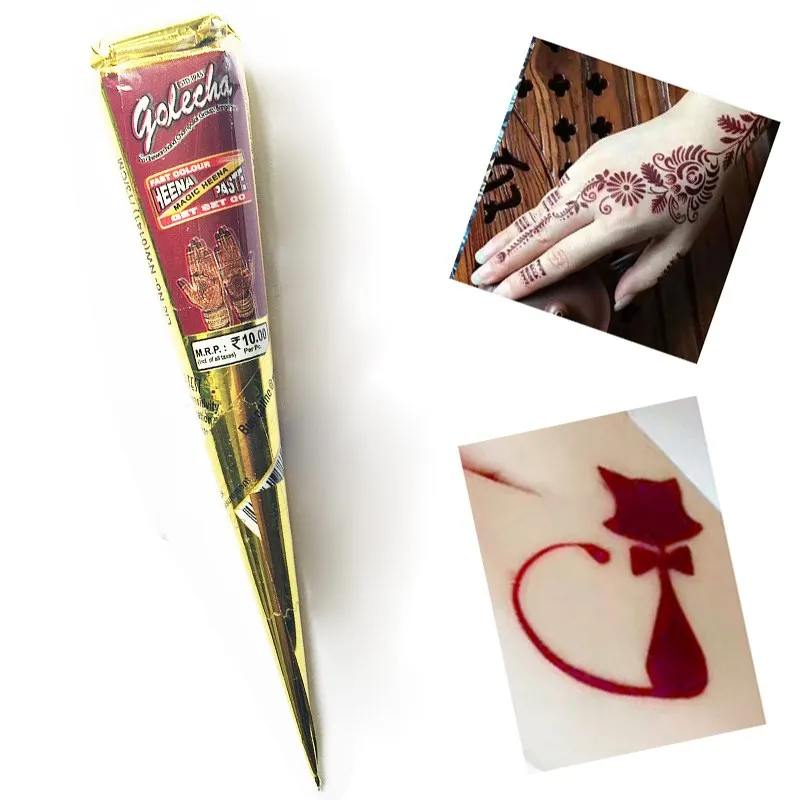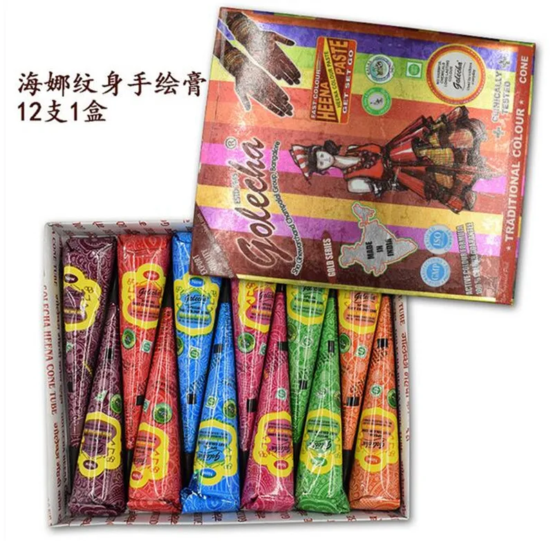 Golecha 12 шт. 25 г темно-красный михенди, хна, конусов индийские натуральные хна наклеивающаяся Татуировка Временные татуировки руки для боди-арта Краски пигмент