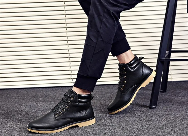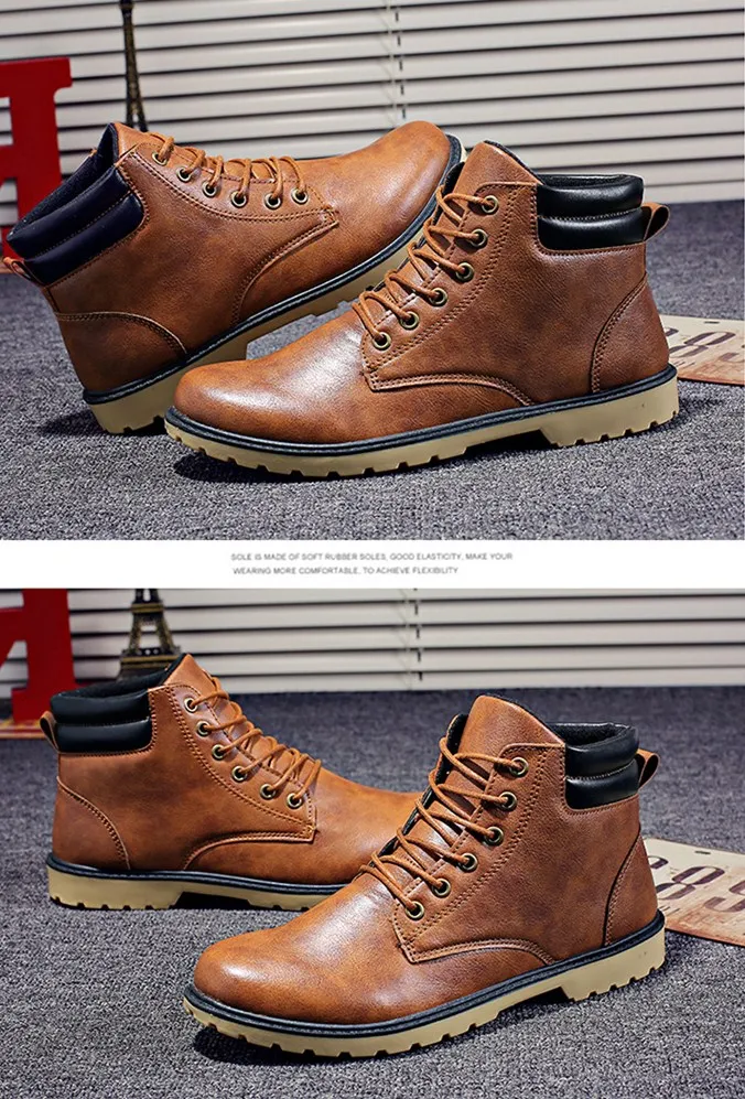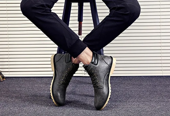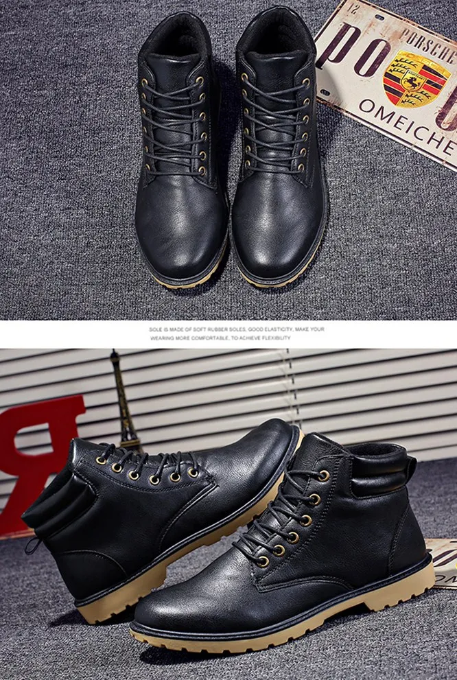 Мужские повседневные рабочие ботинки; Сезон осень-зима; Мужская обувь из искусственной кожи с высоким берцем; Ботильоны Martin; Водонепроницаемые мужские хлопковые ботинки в стиле ретро; 2021