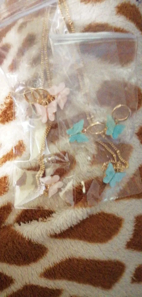 Ожерелье и серьги заняли четыре месяца. I Only had Tracking to the part Where the avion Comes out of the country. Оттуда больше информации не было. Ожерелье и серьги идентичны оригинальному изображению. Что, если я могу сказать, как что-то новое, так это то, что палка, чтобы вставить ее в ухо, очень большая. Кажется, пирсинг, насколько он большой. Это не вызвало у меня аллергии или странного запаха. Он тоже не ржавый. Я очень рекомендую продукт, потому что он очень милый. Четыре месяца ожидания того стоило, хотя у меня не было никаких последующих действий.❤️
