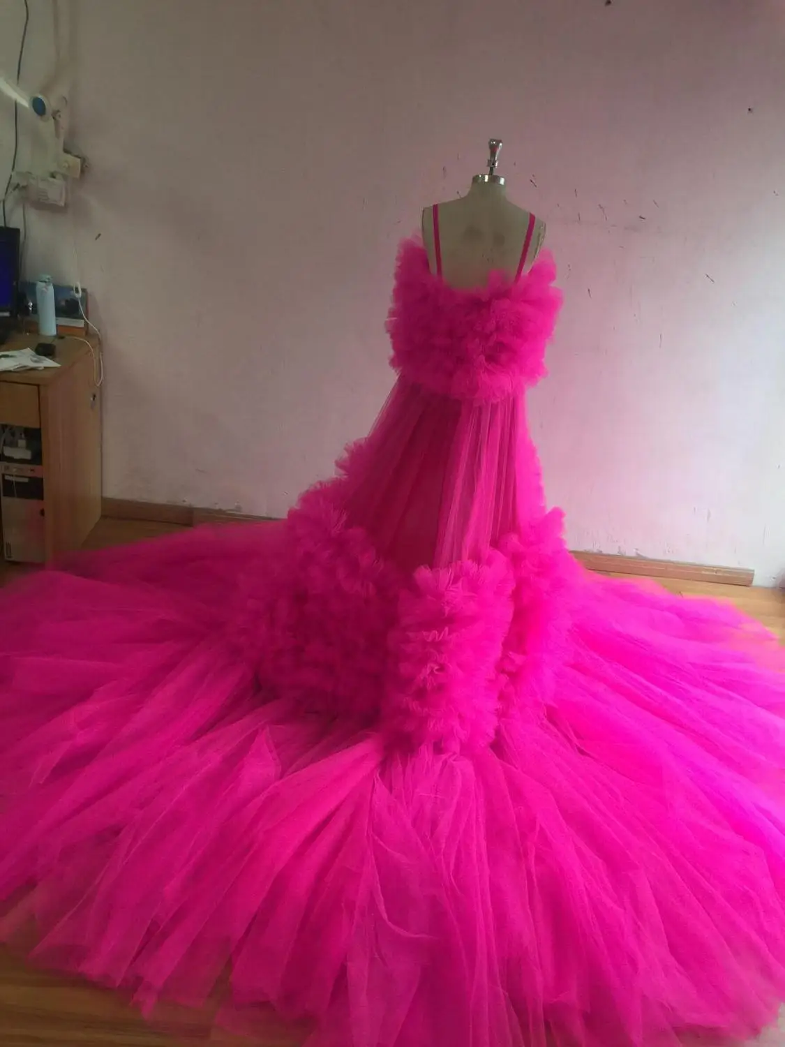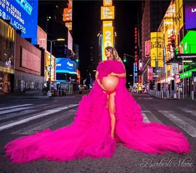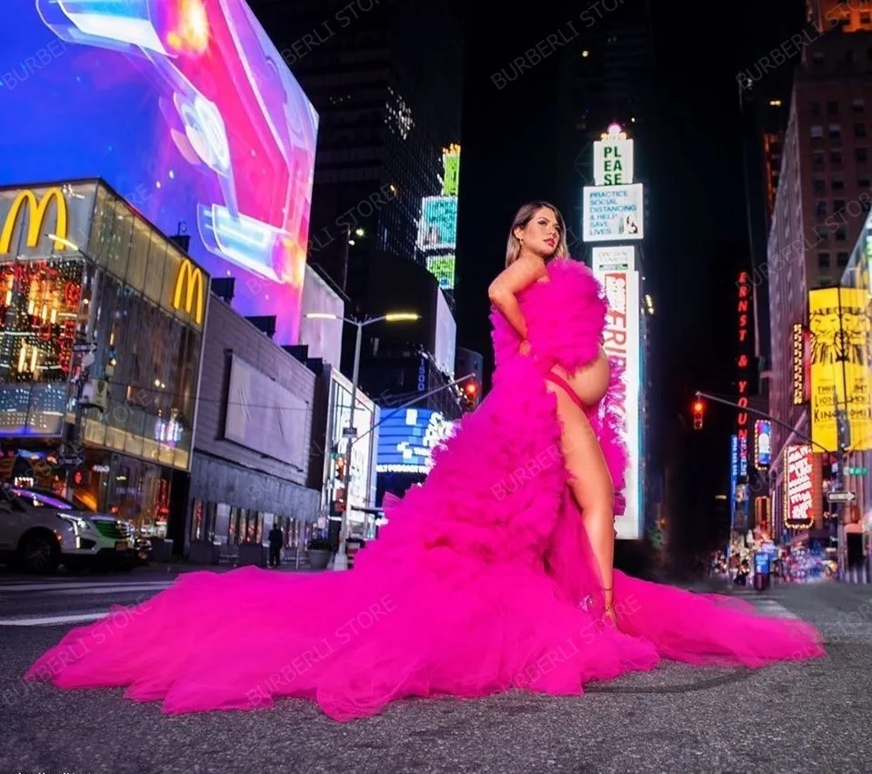 Реальное изображение, ярко-розовое Пышное Платье-балахон, тюлевые платья для беременных женщин, платья для фотосессии с длинным шлейфом, изготовленные на заказ