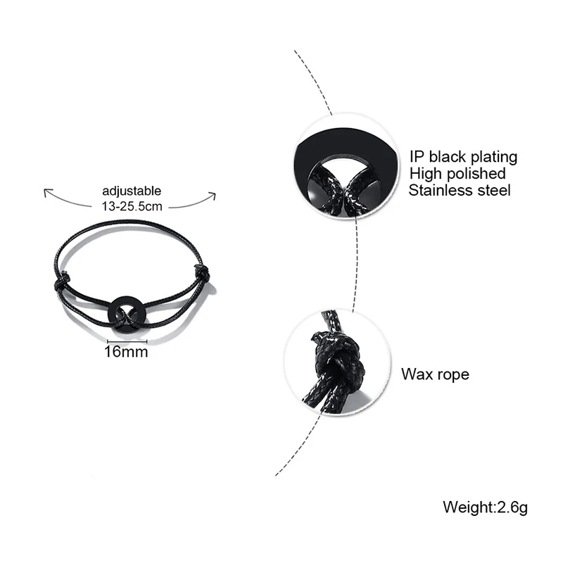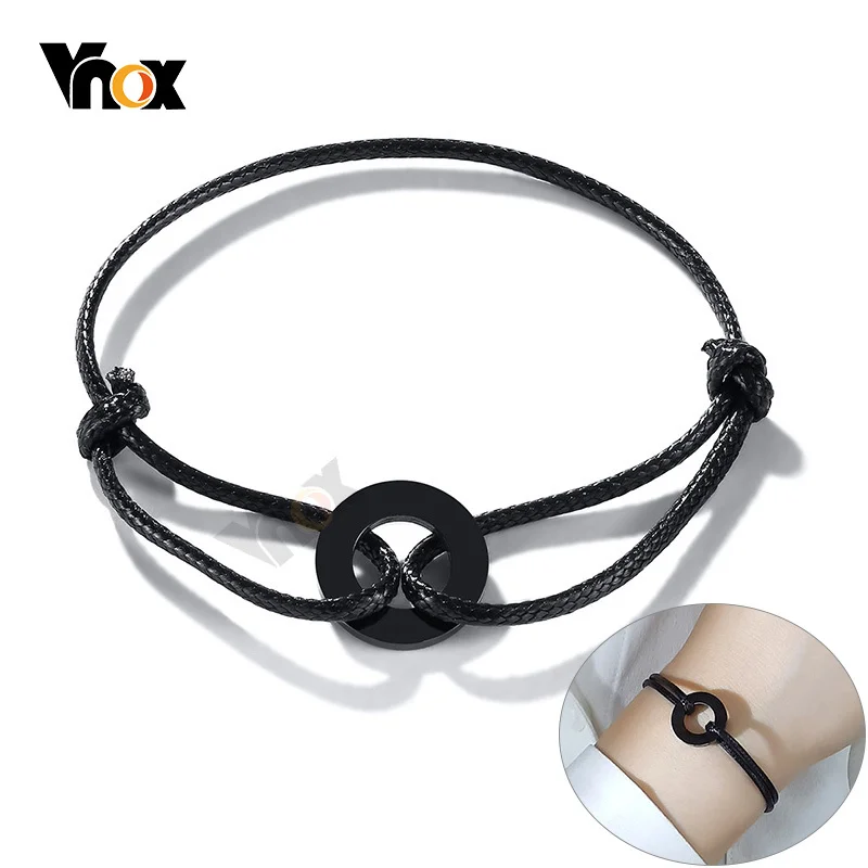 Простые круглые браслеты Vnox для мужчин и женщин, изящные украшения на запястье регулируемой длины из черного шнура, повседневные украшения для влюбленных пар