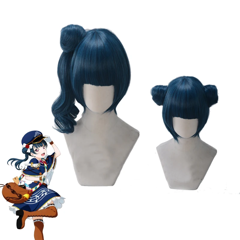 Lovelive Sunshine, тцушико, темно-синий пучок, милый косплей, ролевая игра, синтетические волосы, Хэллоуин, вечеринка, карнавал + бесплатная шапочка для парика