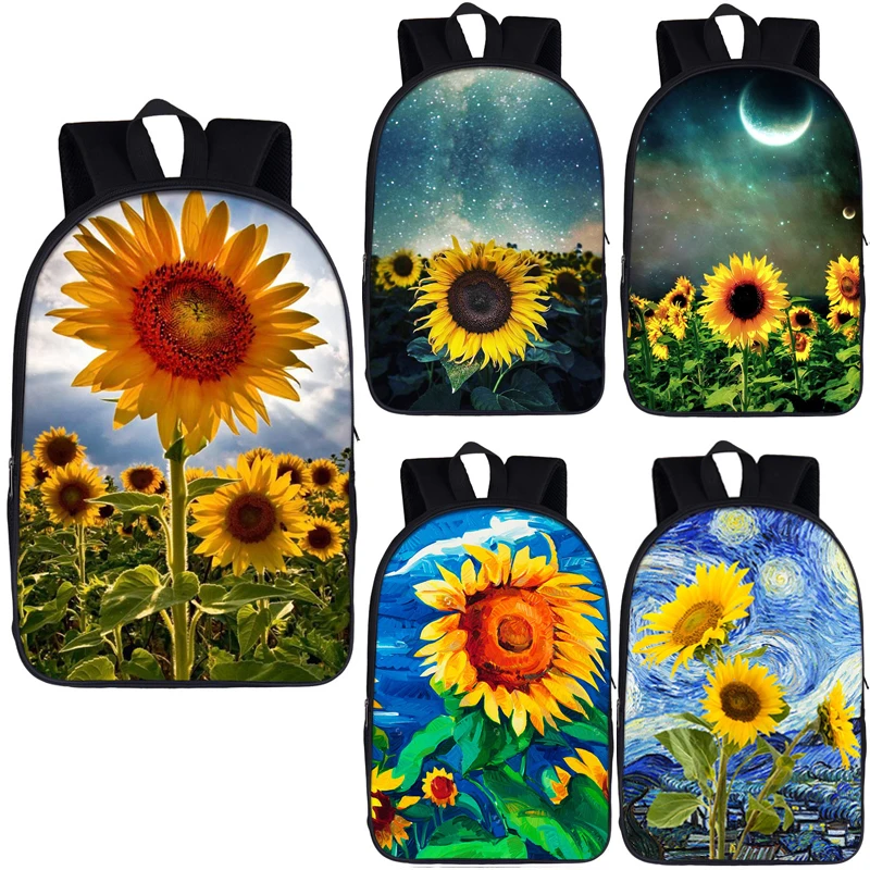 Подростковые школьные ранцы Ван Гога, рюкзак с подсолнухами, школьный ранец с принтом звездной ночи и желтым подсолнухом, дорожные сумки, лучший подарок