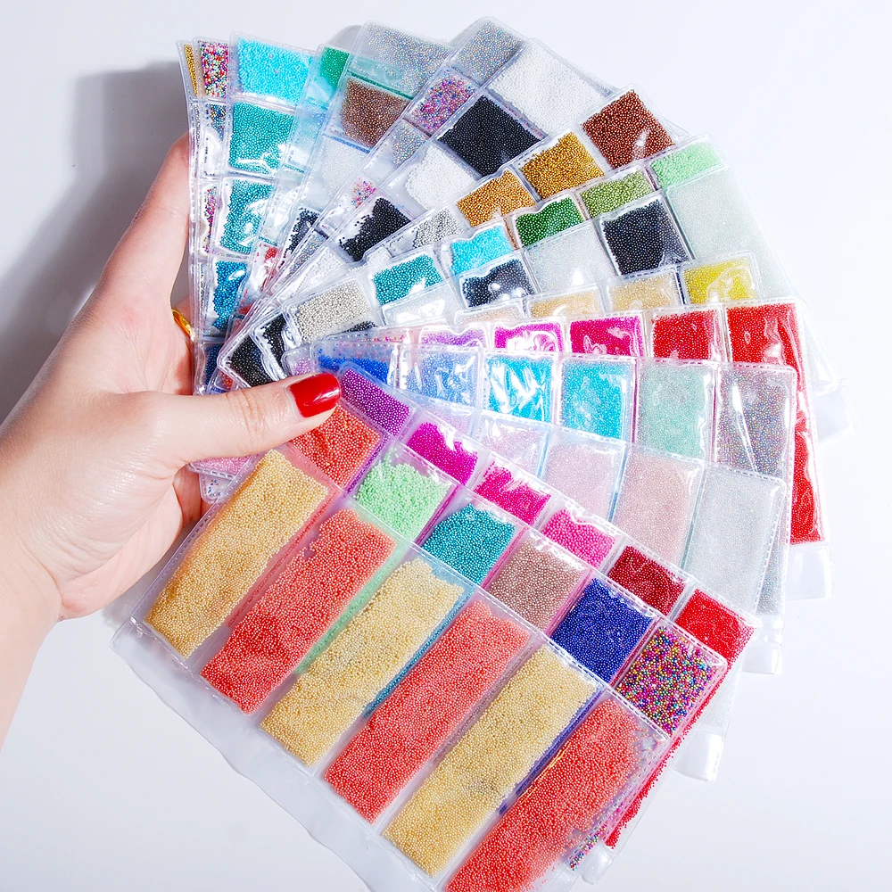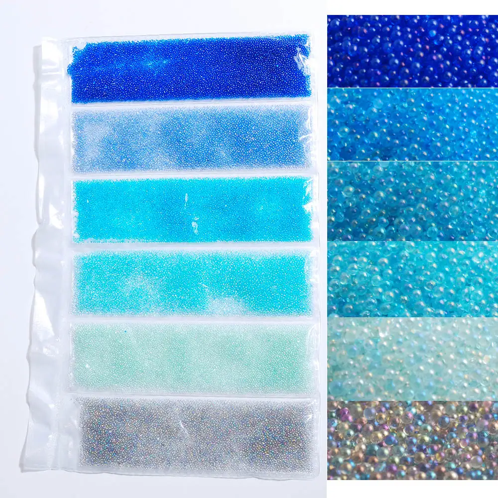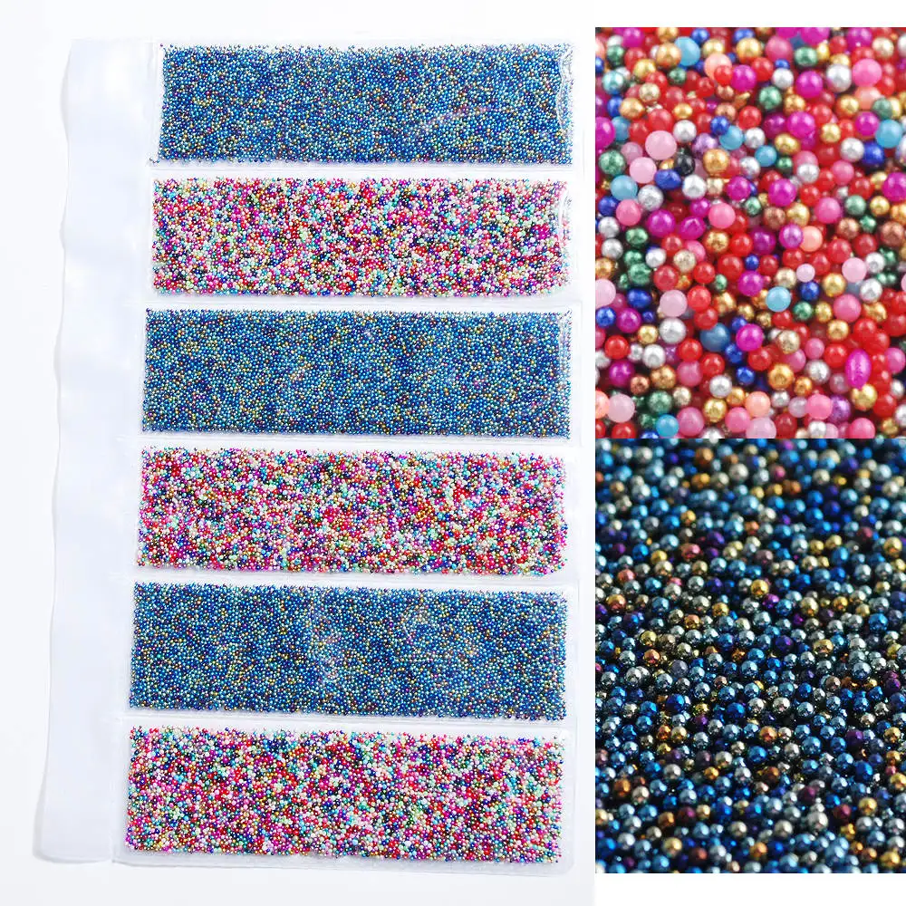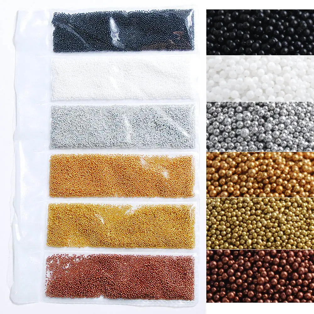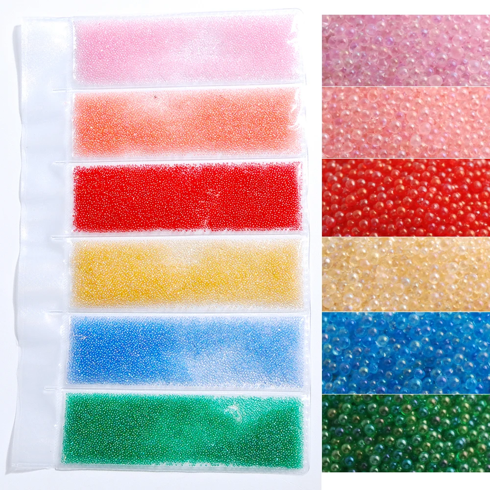 Шарики для ногтей в классической упаковке, 6 цветов, Стеклянные Мини-шарики для маникюра, дизайн ногтей, украшение, шарики в стиле икры, 3D шарики для ногтей, блестящие