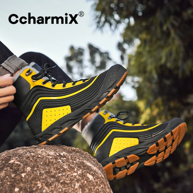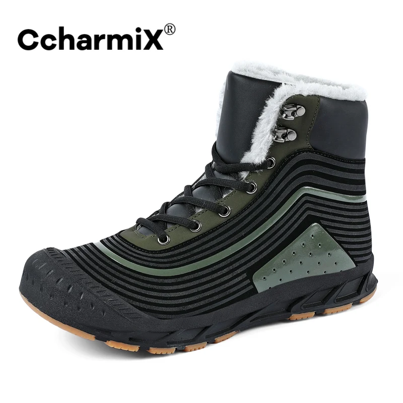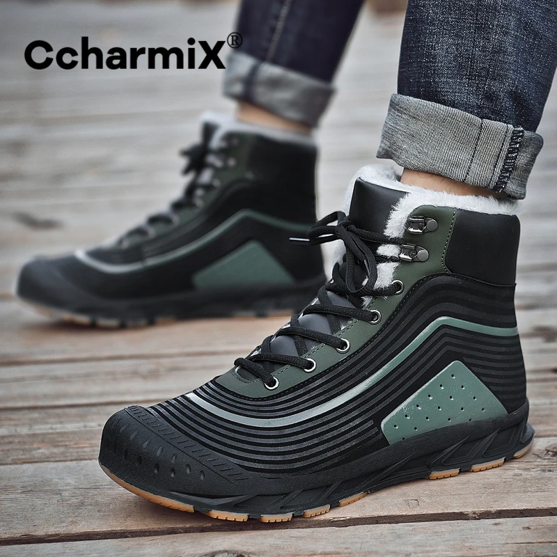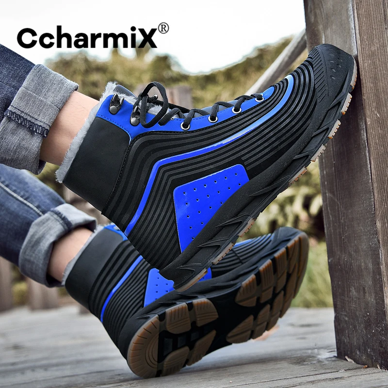 CcharmiX новые зимние ботинки с мехом для мужчин очень теплые размеры 39 47 мужская обувь зимние короткие плюшевые модные мужские ботильоны