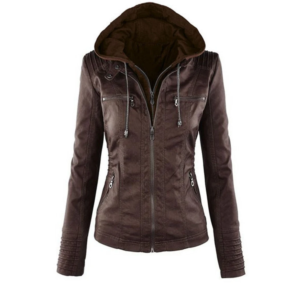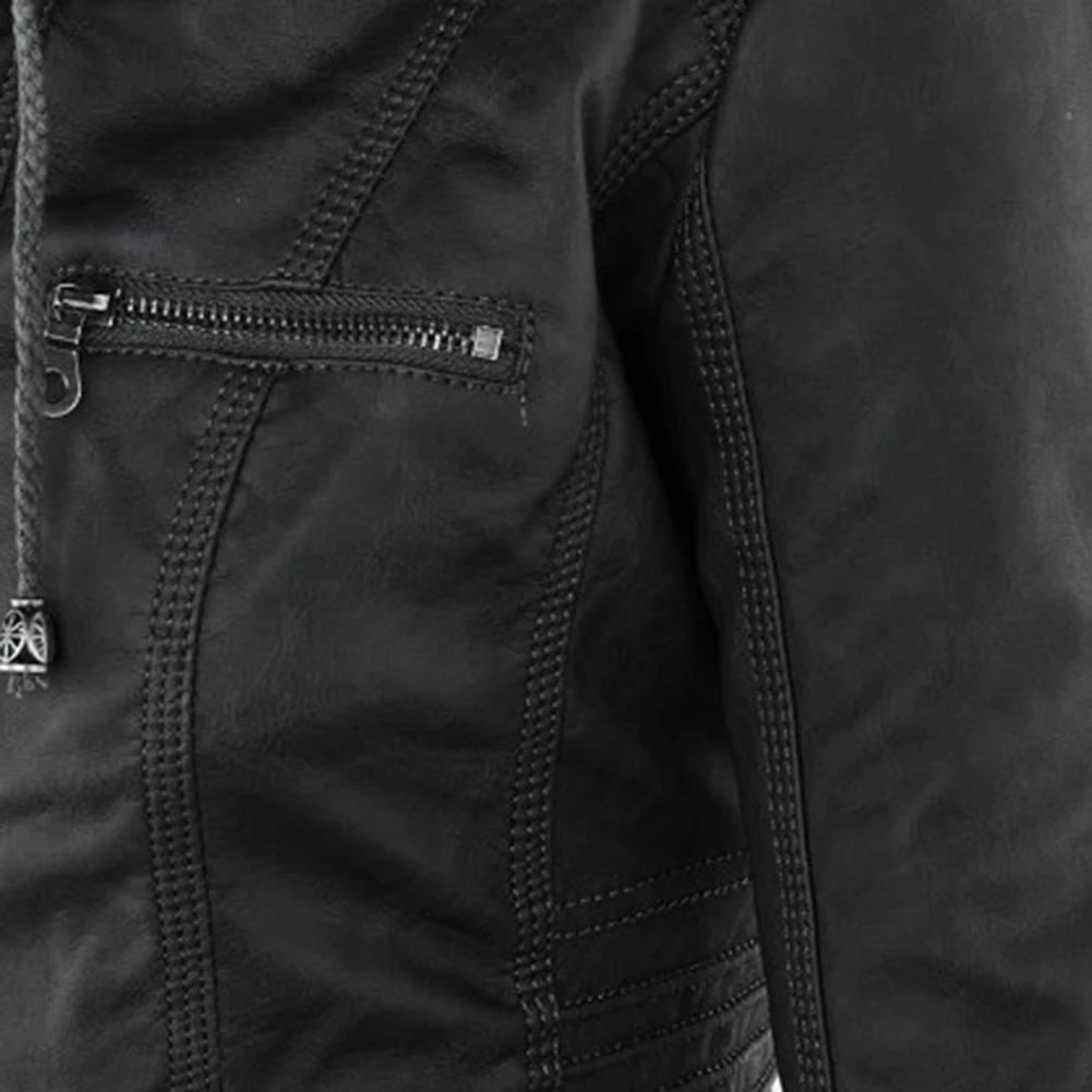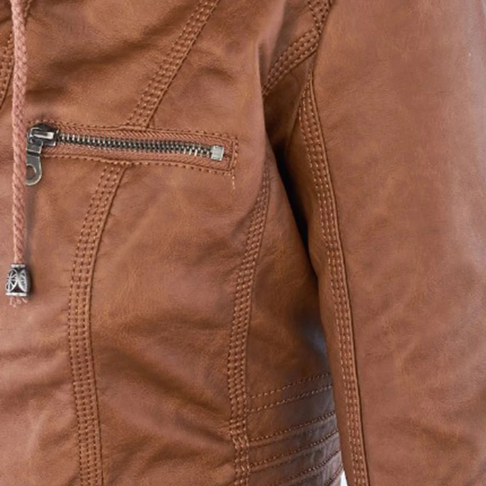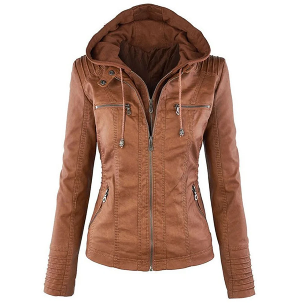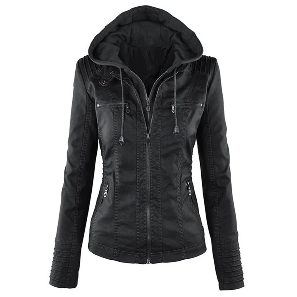 Женская куртка с карманами из искусственной кожи размера плюс, однотонная тонкая верхняя одежда на молнии