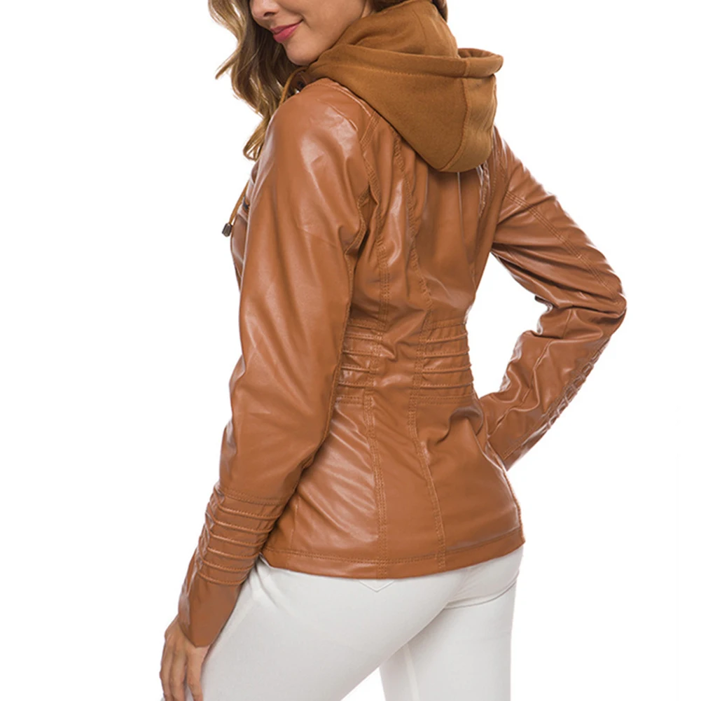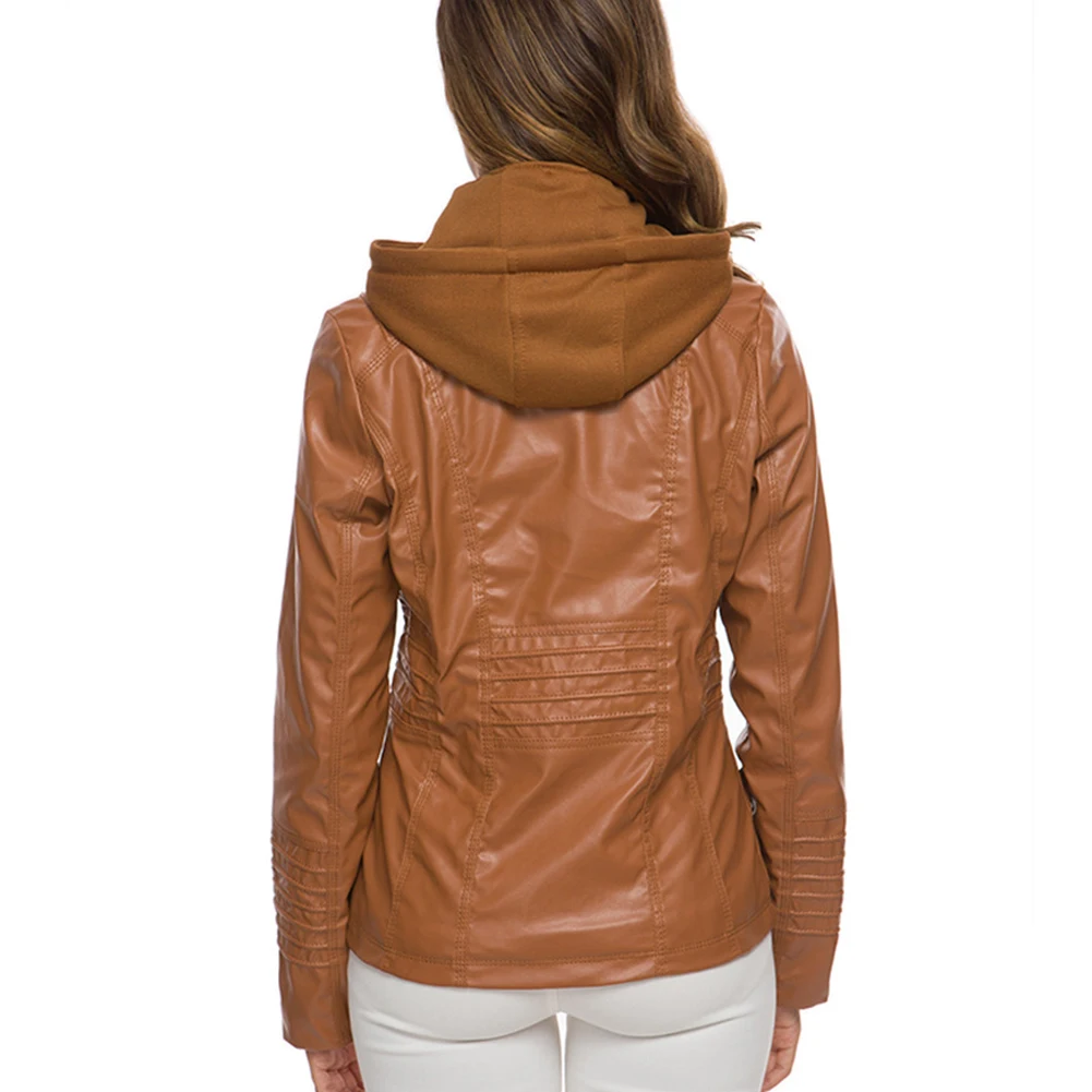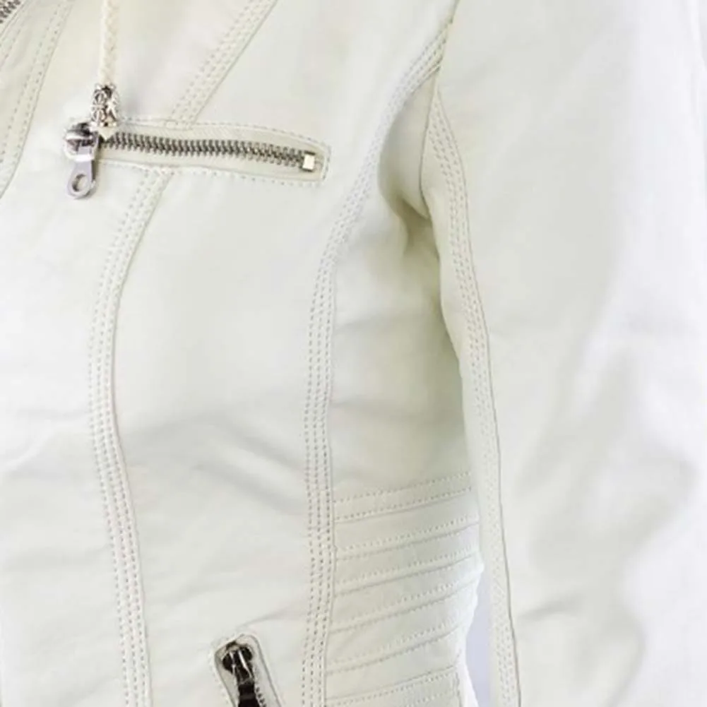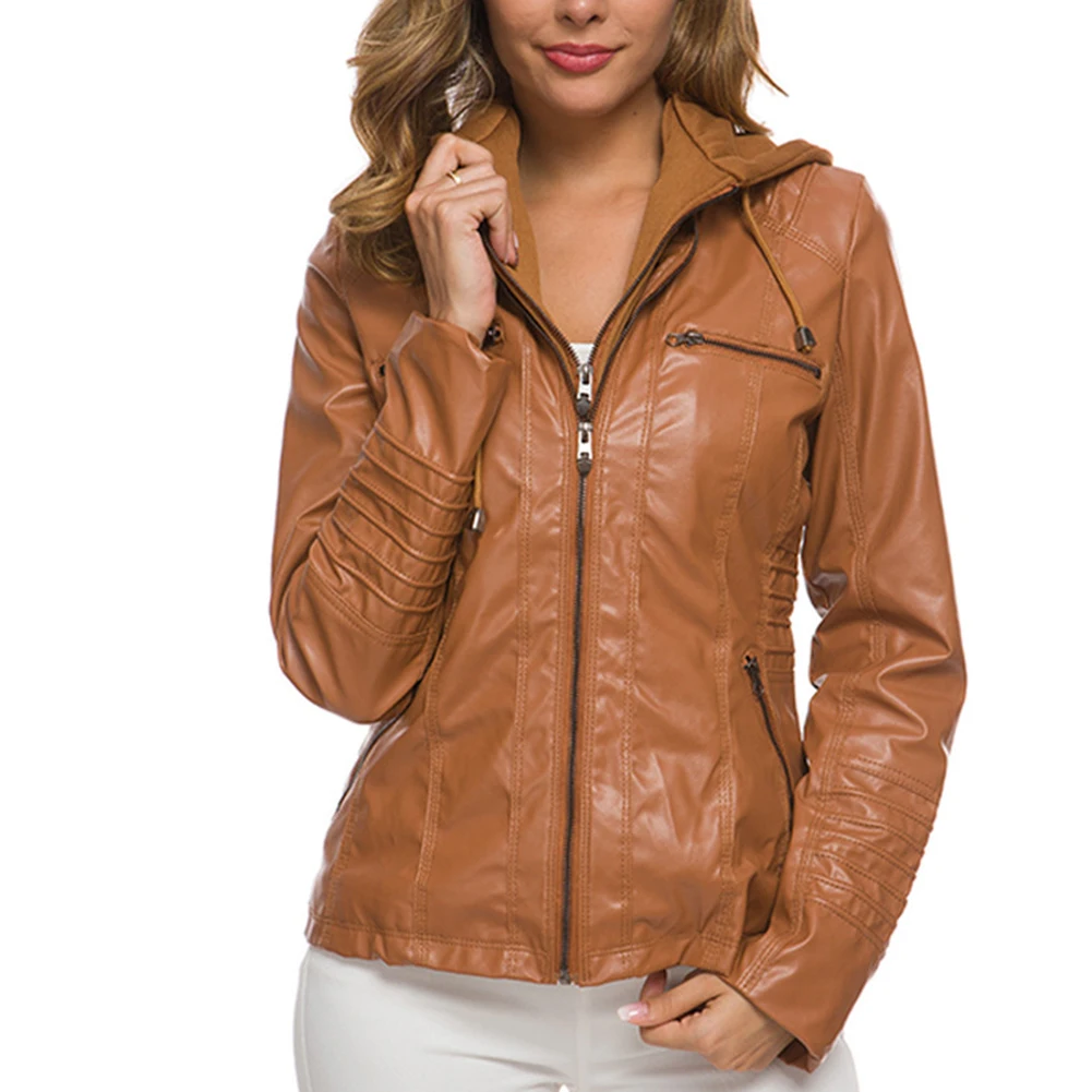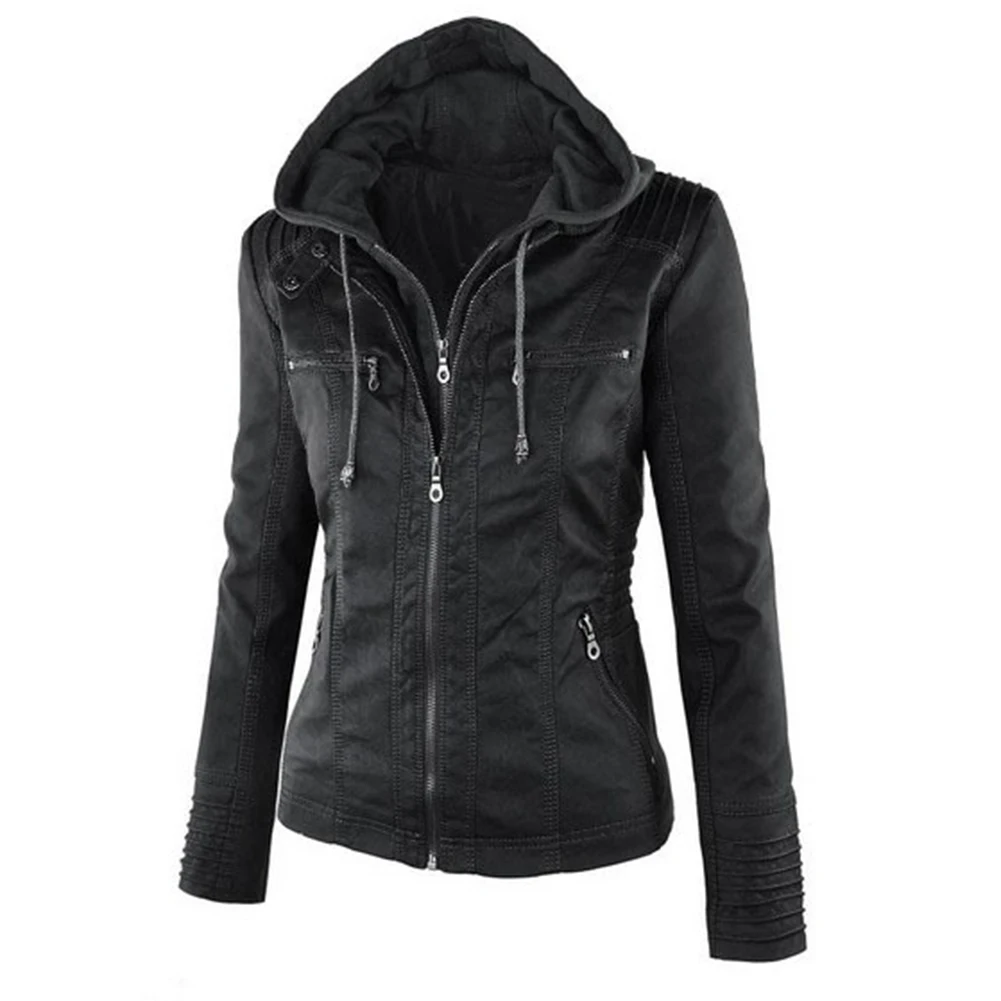 Женская куртка с карманами из искусственной кожи размера плюс, однотонная тонкая верхняя одежда на молнии
