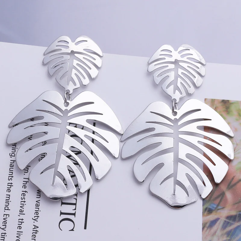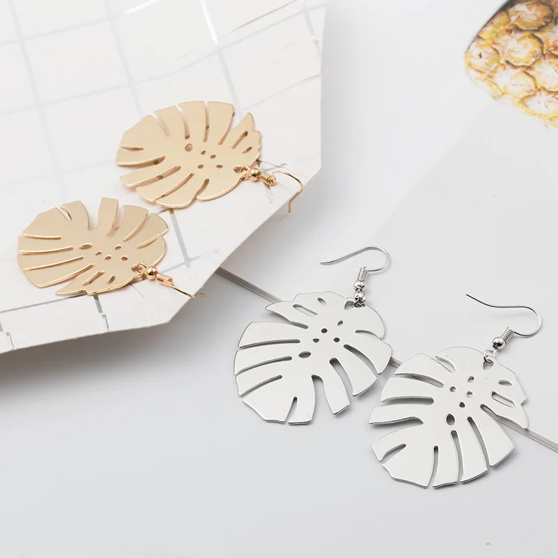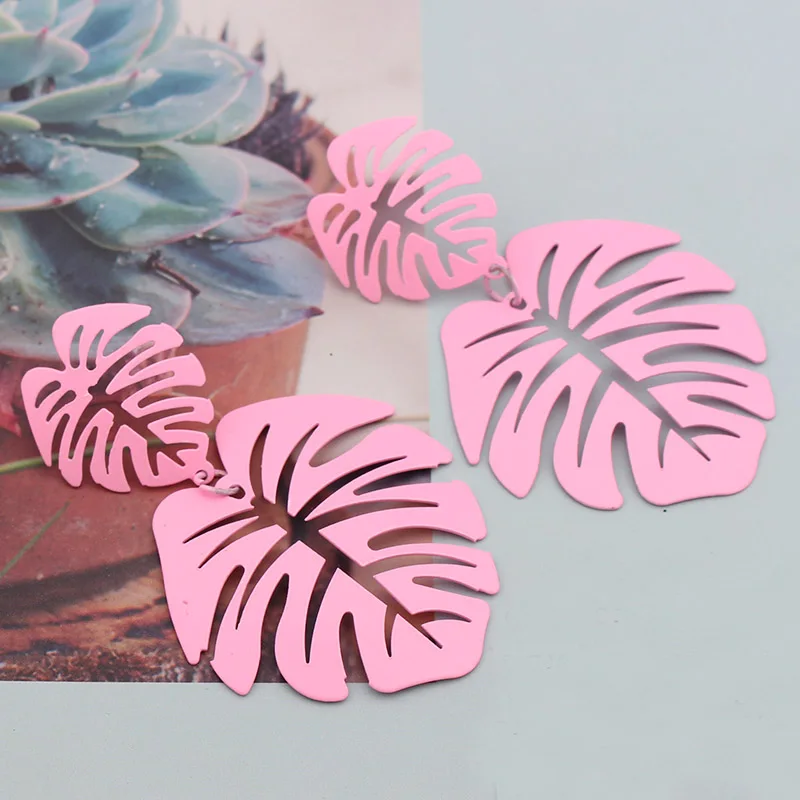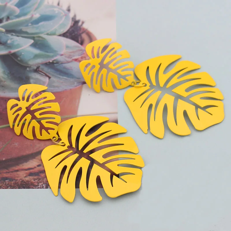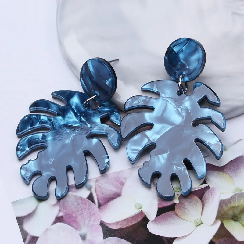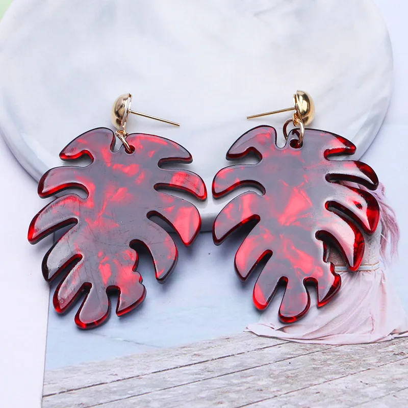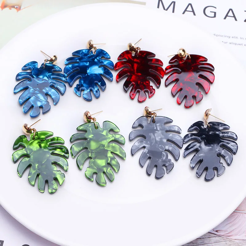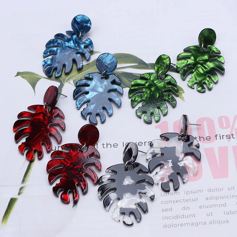 Женские серьги-подвески с листьями Monstera, разноцветные акриловые металлические серьги-подвески, массивное Ювелирное Украшение для ушей