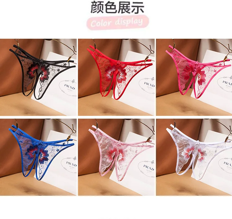 Стринги женские, прозрачные, с вышивкой, с низкой талией