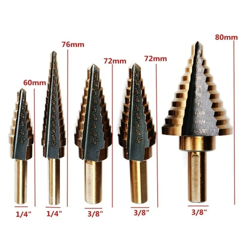 Ступенчатое сверло из быстрорежущей стали с титановым покрытием для электроинструментов, коническое сверло для высокоскоростного сверления отверстий в металле, стали, дереве, 35 шт.