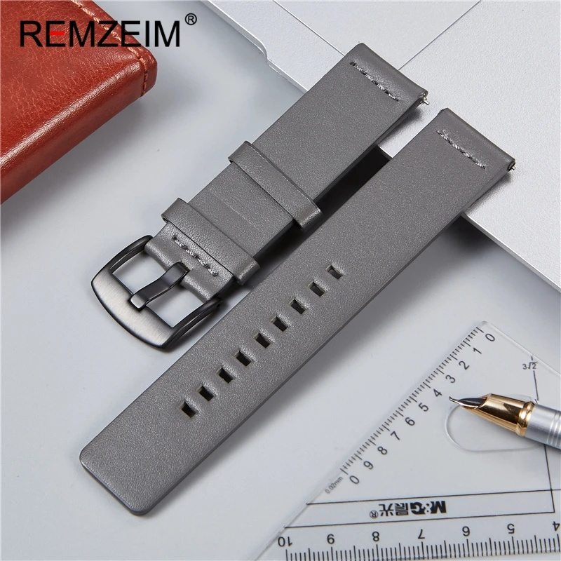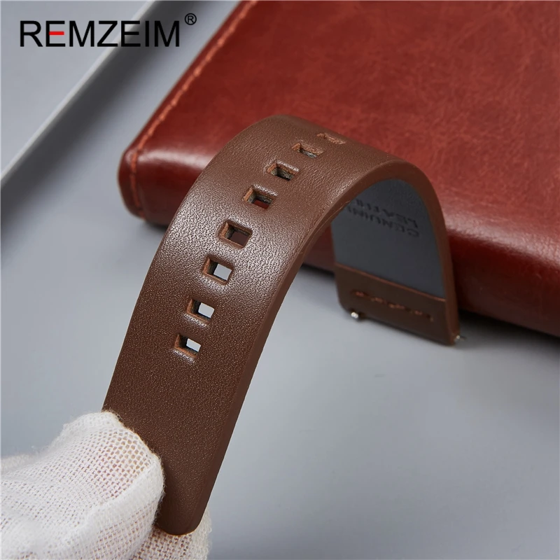 Ремешок REMZEIM из натуральной кожи для Samsung Galaxy Watch 46 мм 42 мм Active 2 40 мм 44 мм, кожаный браслет для Gear S3 S2, 22 мм 20 мм