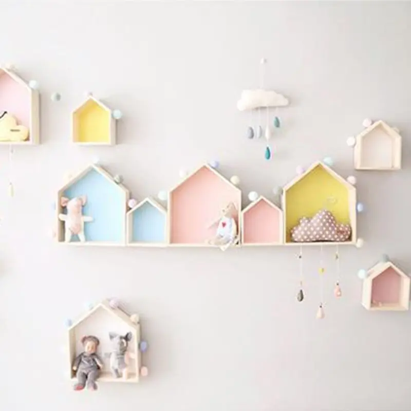 Настенное украшение, деревянная полка для детской комнаты, украшение для детской комнаты, настенная деревянная полка для детской комнаты, для мальчиков и девочек, Настенная декоративная полка