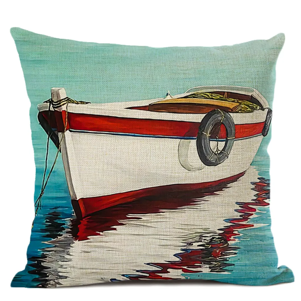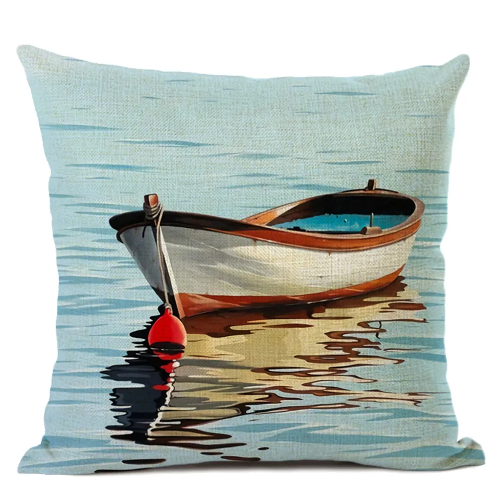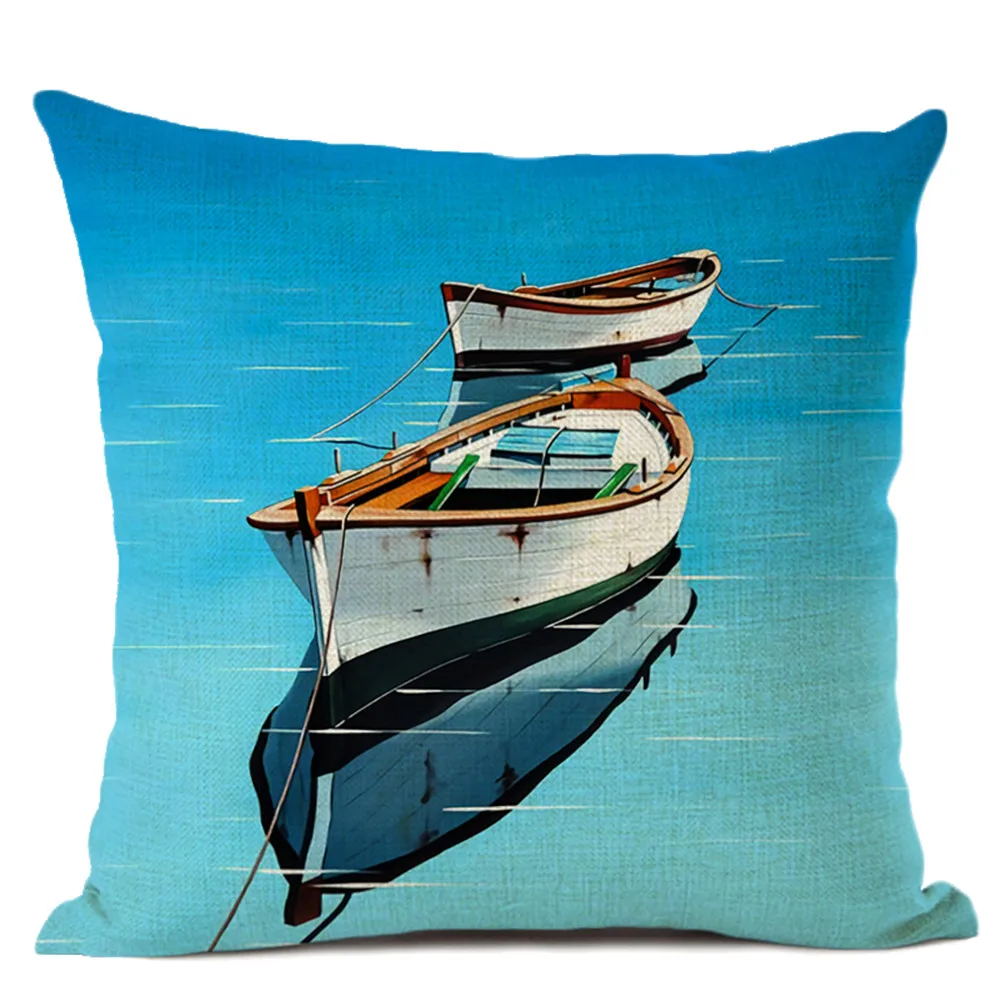 Льняная наволочка для подушки с изображением лодки на берегу, дивана, кровати, гостиной