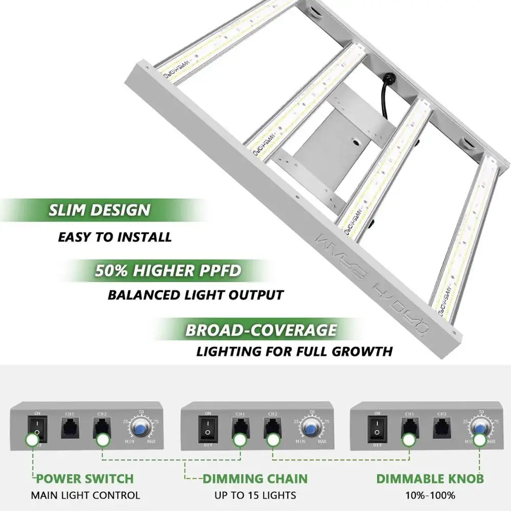 4. Бум выход и повышение качества урожаяМодернизированный sunlike полный ассортимент, высокая PPFD при температуре не выше 2,8 мкмоль/j, средняя доходность на 2,5 g/w, повышаем вашу выход 50% или больше по сравнению со старым blurple и HPS lights.180 ° Складная, легкая установка опции, позволяет расти с уверенностью.
