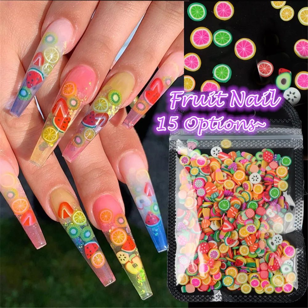 Красочные разные стили 3D фрукты крошечные Ломтики Полимерная глина DIY украшения для ногтей Ломтики для дизайна ногтей женские наклейки для ногтей
