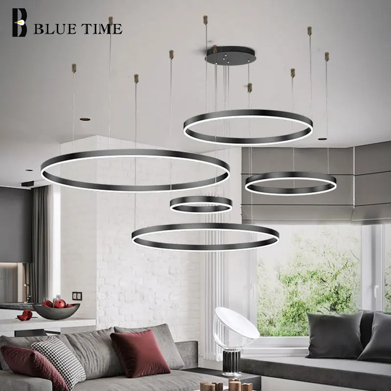 Современный светодиодный подвесной светильник, комнатное освещение, круглые кольца, подвессветильник льник для гостиной, столовой, светодиодные светильники, Подвесная лампа