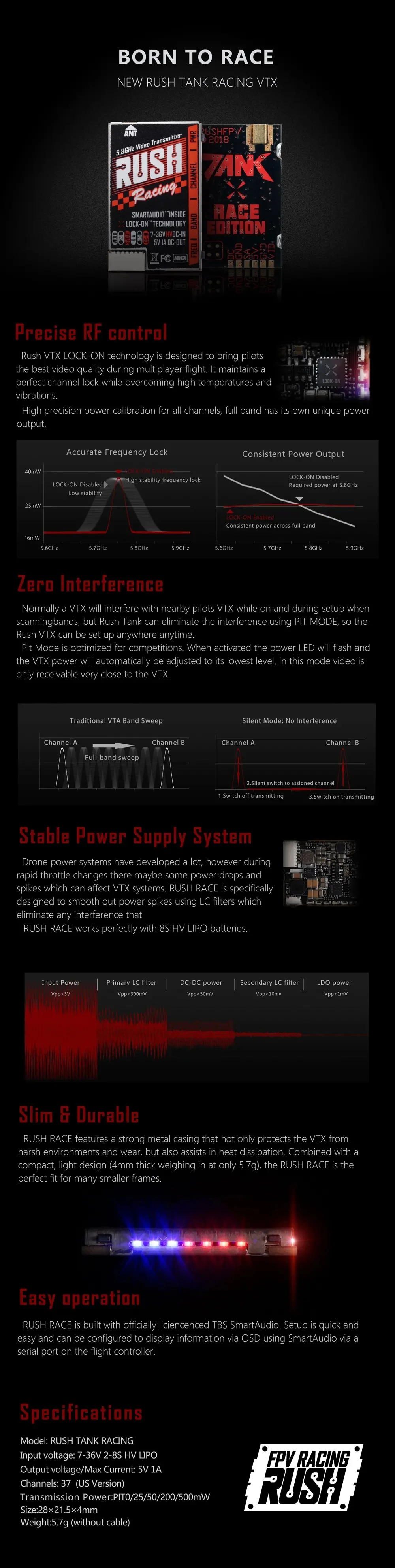 Раш Танк 5,8G 48CH переключаемый 2-8S VTX FPV передатчик для RC FPV гоночный Дрон RC модели игрушки Запасные части DIY аксессуары