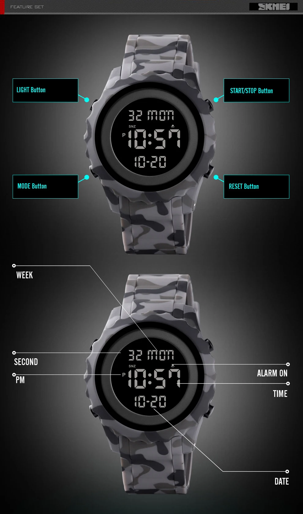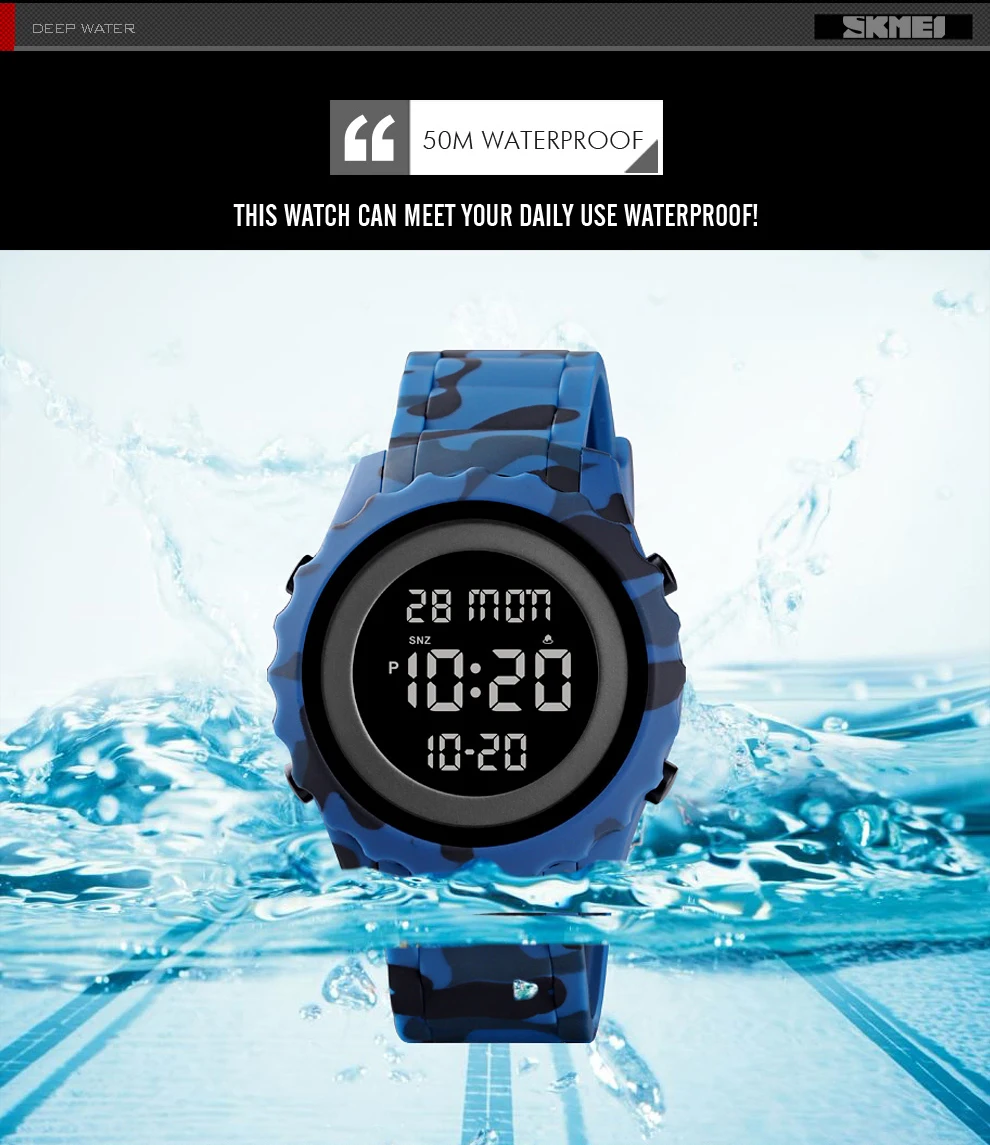 SKMEI наружные часы мужские цифровые наручные часы спортивные часы камуфляжные модные водонепроницаемые часы Chrono подсветка reloj hombre