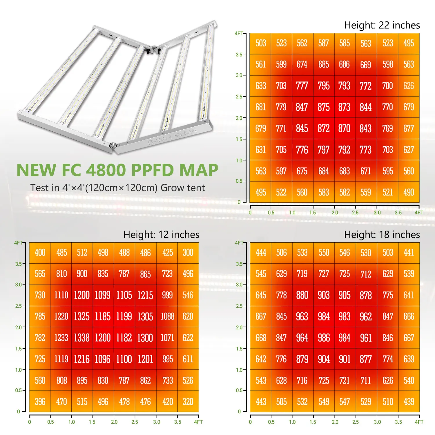 Модель: Mars Hydro FC 4800 светодиодный светильник для выращиванияКоличество светодиодов: 1680 шт.Тип СВЕТОДИОДА: Samsung LM301B и Osram 660nmСпектр: 380-410nm, 650-665nm, 730-740nm, 2800-3000K, 4800-5000K,Фактическая мощность (± 5%): 483 Вт ± 5% при AC120V, 462 Вт ± 5% при AC240V, 459 Вт ± 5% при AC277VAmp Draw: 3.995A @ AC120V2.024A @ AC240V1.780A @ AC277VЯдро покрытие: 4ft × 4ft = 1,2 м × 1,2 мМаксимальный охват: 5ft × 5ft = 1,5 м × 1,5 мPPFD: 1347 мкмоль/с @ AC120VСветовой поток (± 5%): 87515Lm ± 5% @ AC120V,87440Lm ± 5% @ AC240V,87263Lm ± 5% @ AC277VЗаменяет HPS/MH: 600 ваттСветильник Размеры: 83*82*10 см = 33*32*4 дюйм (ов)Вес нетто: 8,8 кг = 19.4IBSУгол обзора светодиодов: 90 °/120 ° смешанныйВходное напряжение: 100-227 в (AC)Частотный диапазон: 56 ~ 60 ГцСрок службы: 50000-100000 часовУровень шума: 0 дБPPE: 2,8 umol/J 2,8 umol/s/w