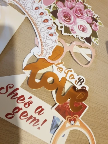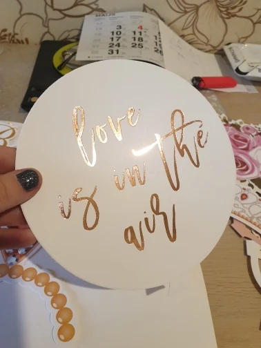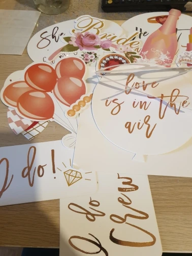 Качество бумаги для фото/картона (я не знаю, как ее описать) очень хорошее, она не ломается, изображения приходят в хорошем размере, включает в себя палку и ленту, чтобы они выглядели так же, как на фото, кроме того, у нее есть металлические детали с розовым золотом блеском в разрезе, супер рекомендуется.