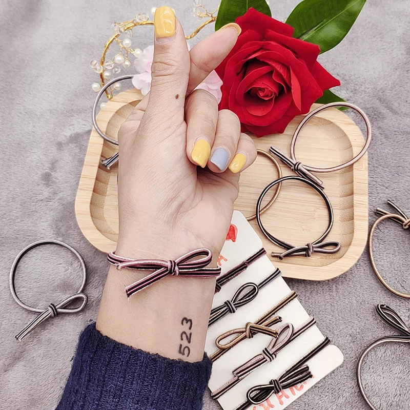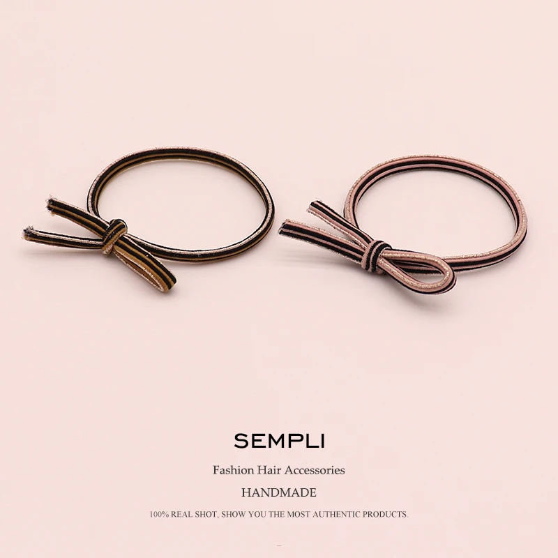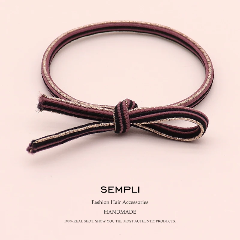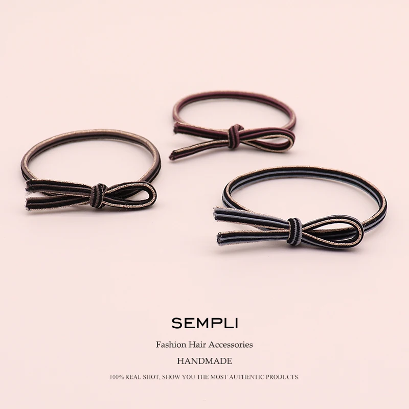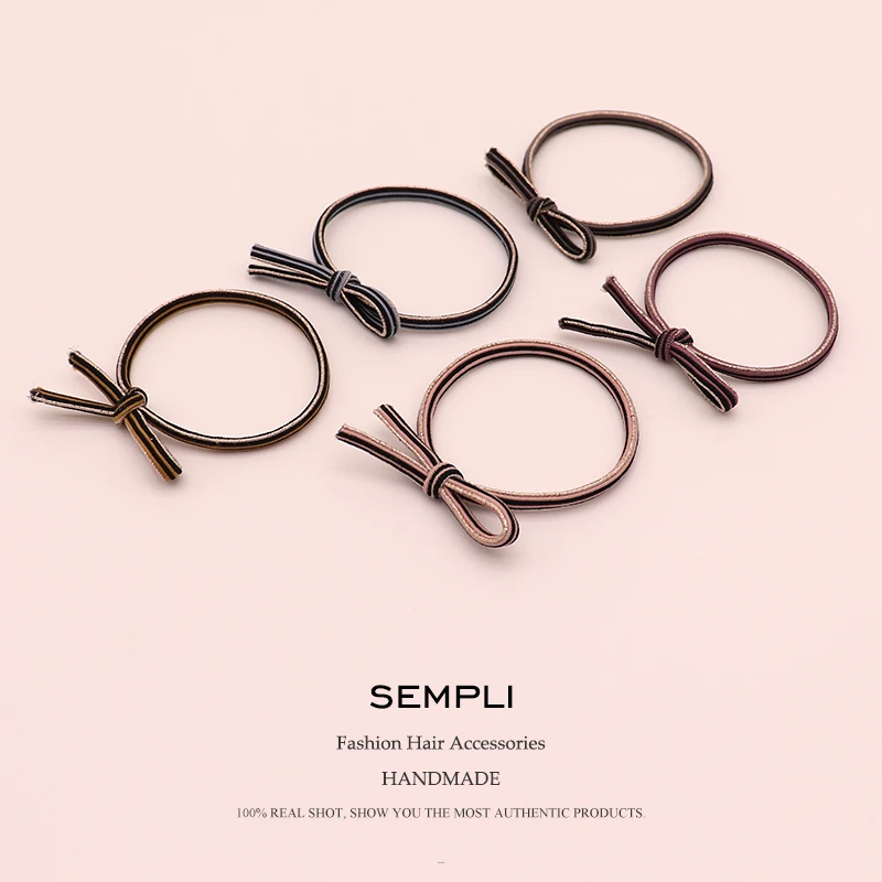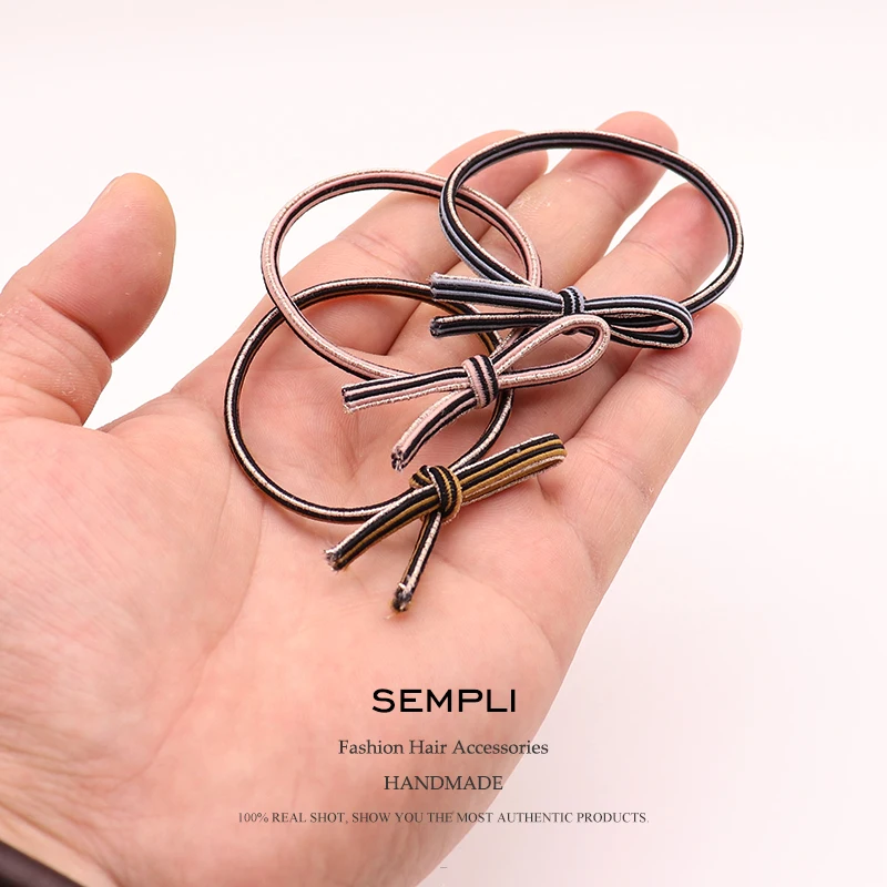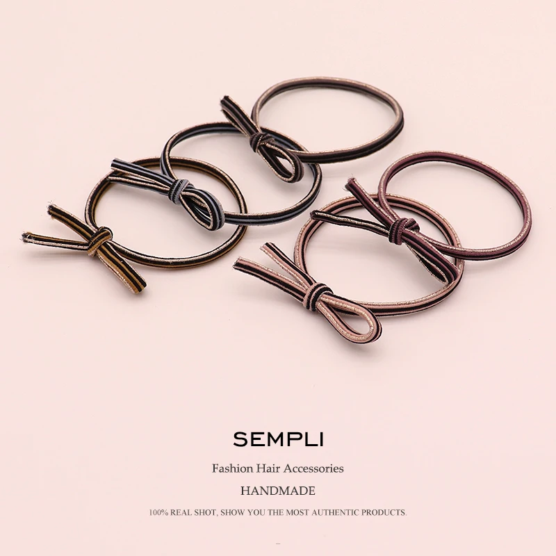 Sempli5 цветов, блестящие классические эластичные резинки для волос с бантом, эластичные женские аксессуары для волос для девочек, резиновые простые резинки для волос