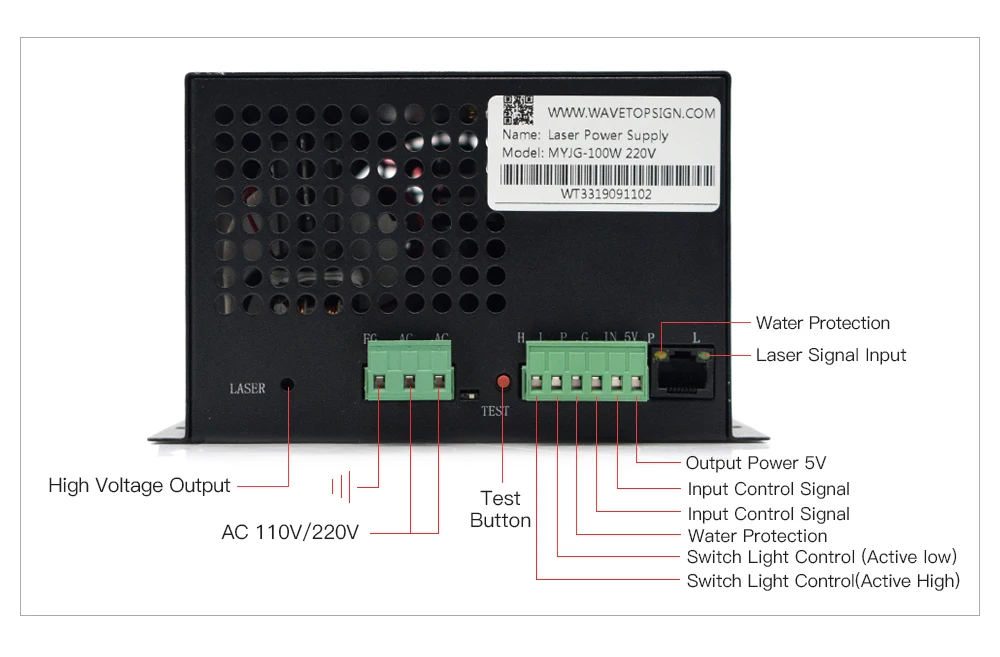 WaveTopSign MYJG-100W 80-100 Вт СО2 лазерный источник питания катег...