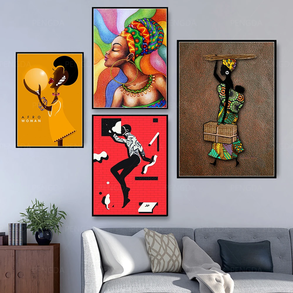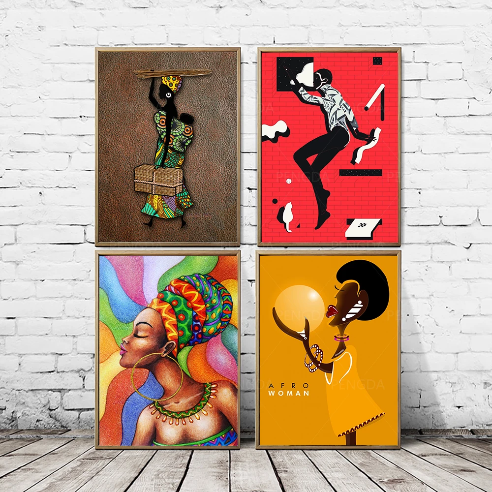 Домашний декор, Золотая Африканская женщина, печатные картины, абст...