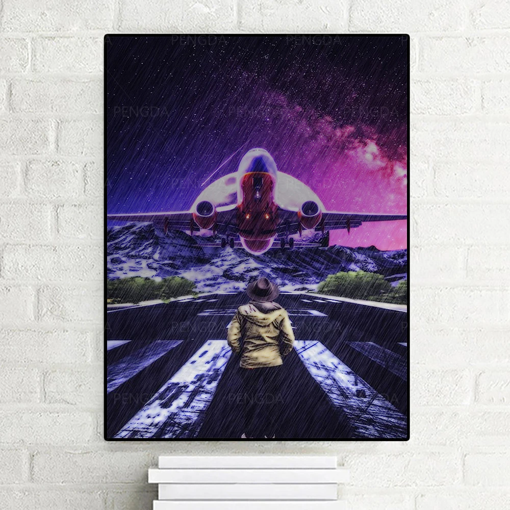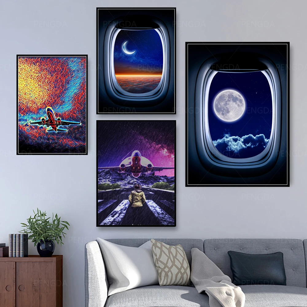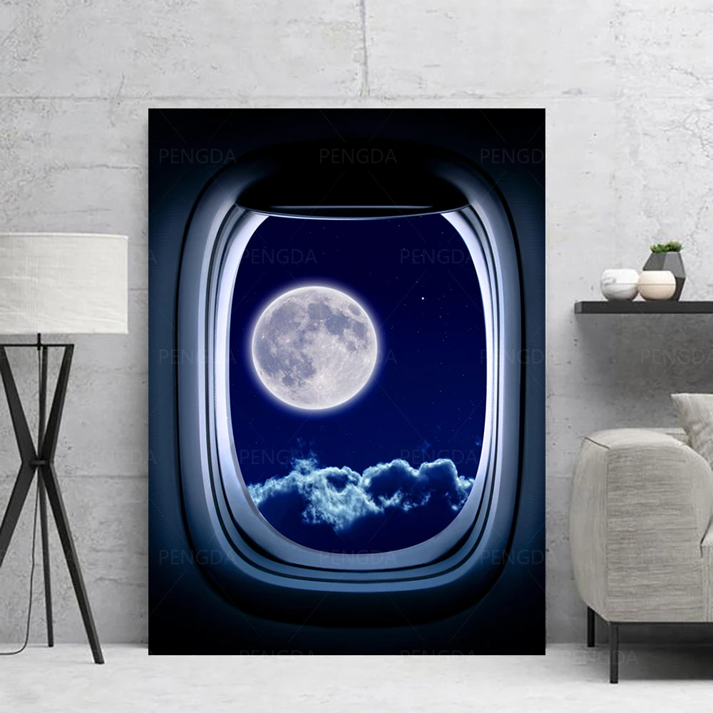Картины на холсте Луна на стену домашний декор Ночной пейзаж плакат с самолетом HD принты эстетические модульные картины для гостиной