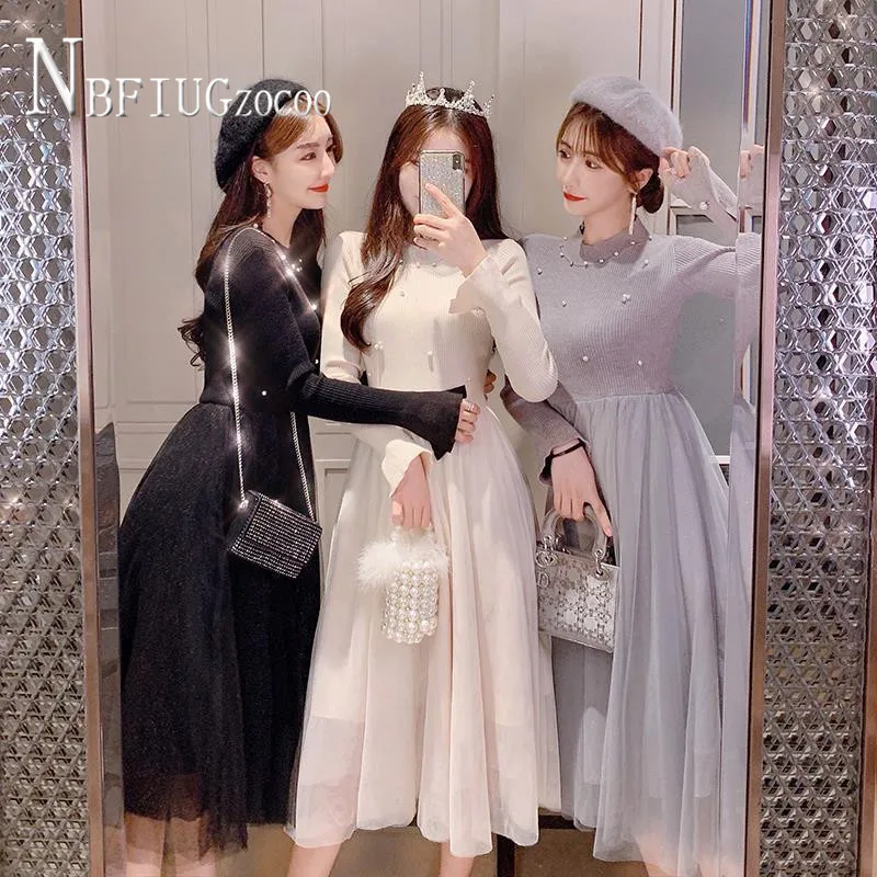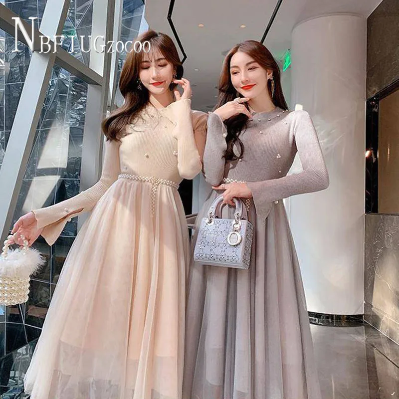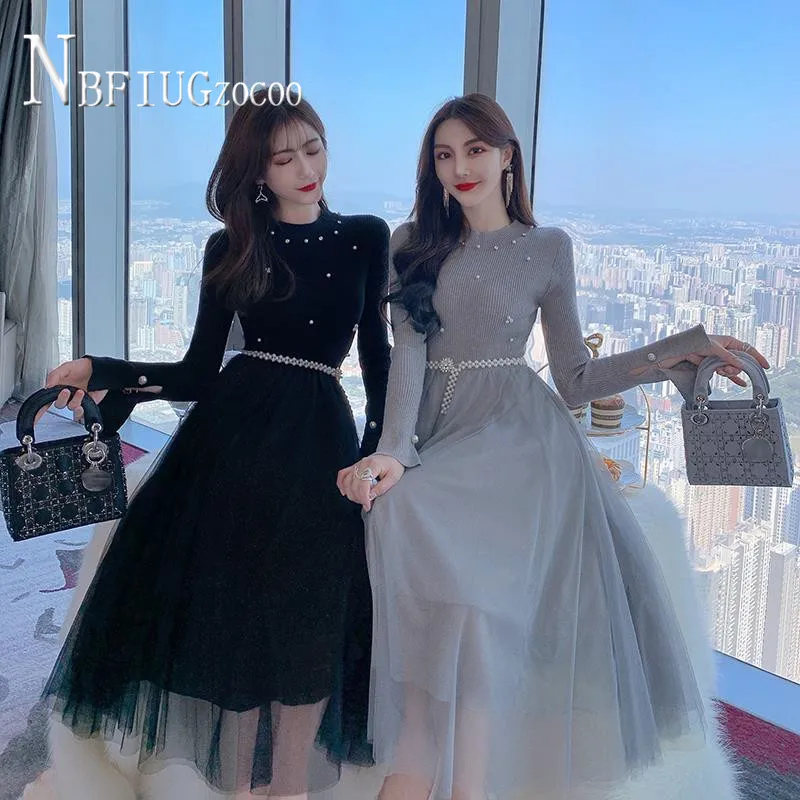 Новинка Осень-зима 2020, облегающее женское платье, вязаные женские платья составного кроя