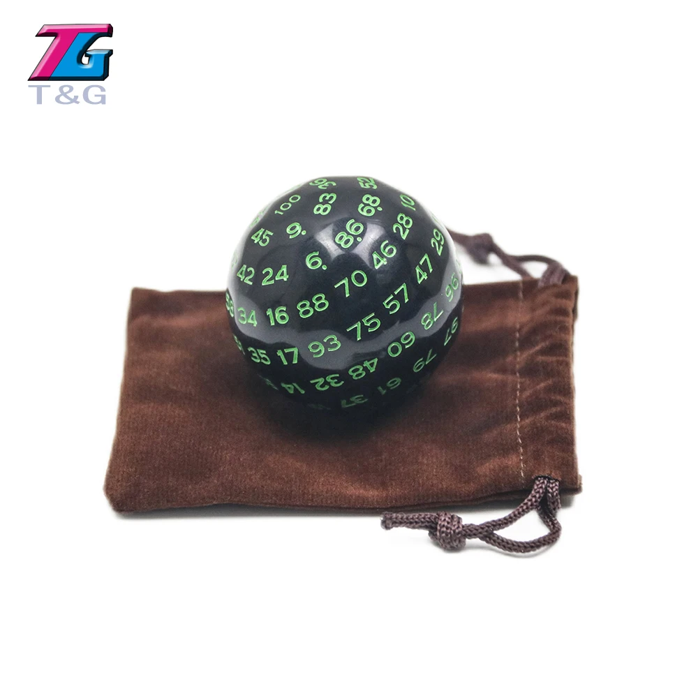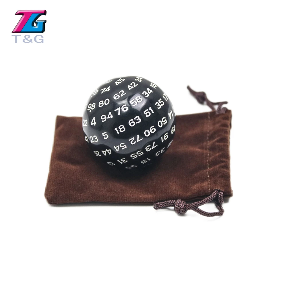 Многогранные игральные кости 100 сторонние, цифровые акриловые D100 49 мм, черного цвета с сумкой для игры в ролевых игр DND, забавные детские вечеринки