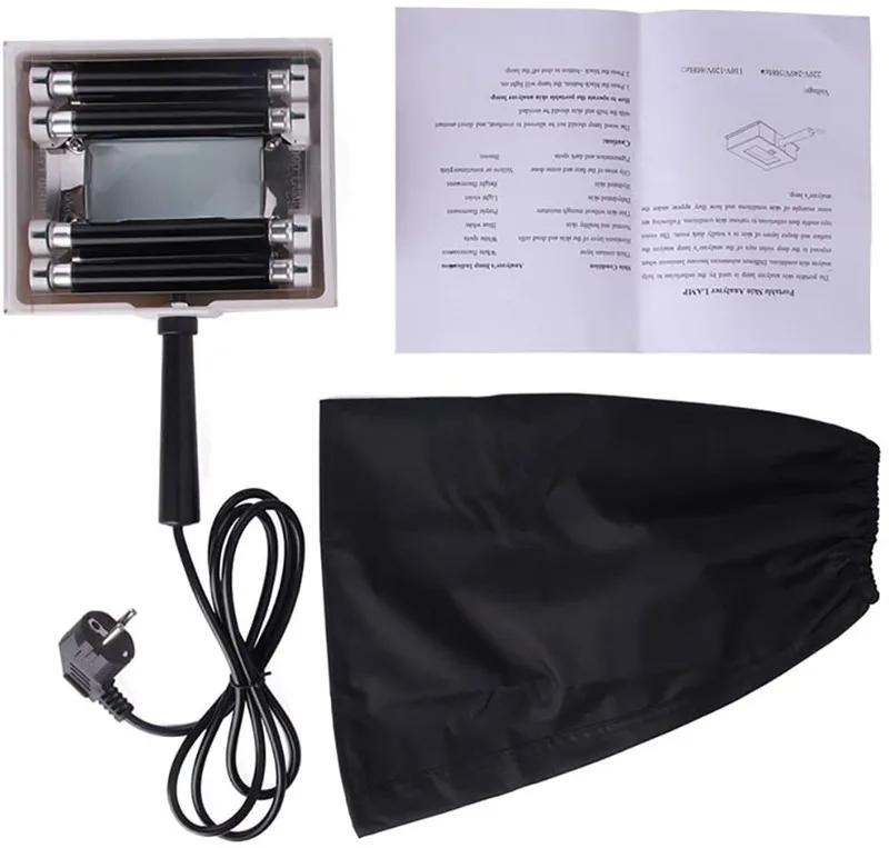Характеристики цвета: Синий светильник: нормальная здоровая кожа Коричневый флуоресцентный: пигментация и темные пятна Оранжевые точки: жирная кожа Фиолетовый и темно-фиолетовый: мягкая кожа, обезвоженная кожа, кожа не пропускает влагу Белый флуоресцентный: толстый слой кожи и клеток Deak Светильник желтый: жирная акне Параметры: Источник питания: 100-120 В/60 Гц 220-240 В/50 Гц Номинальная входная мощность: 54 Вт Длина волны прибл. 365 нанометров.
