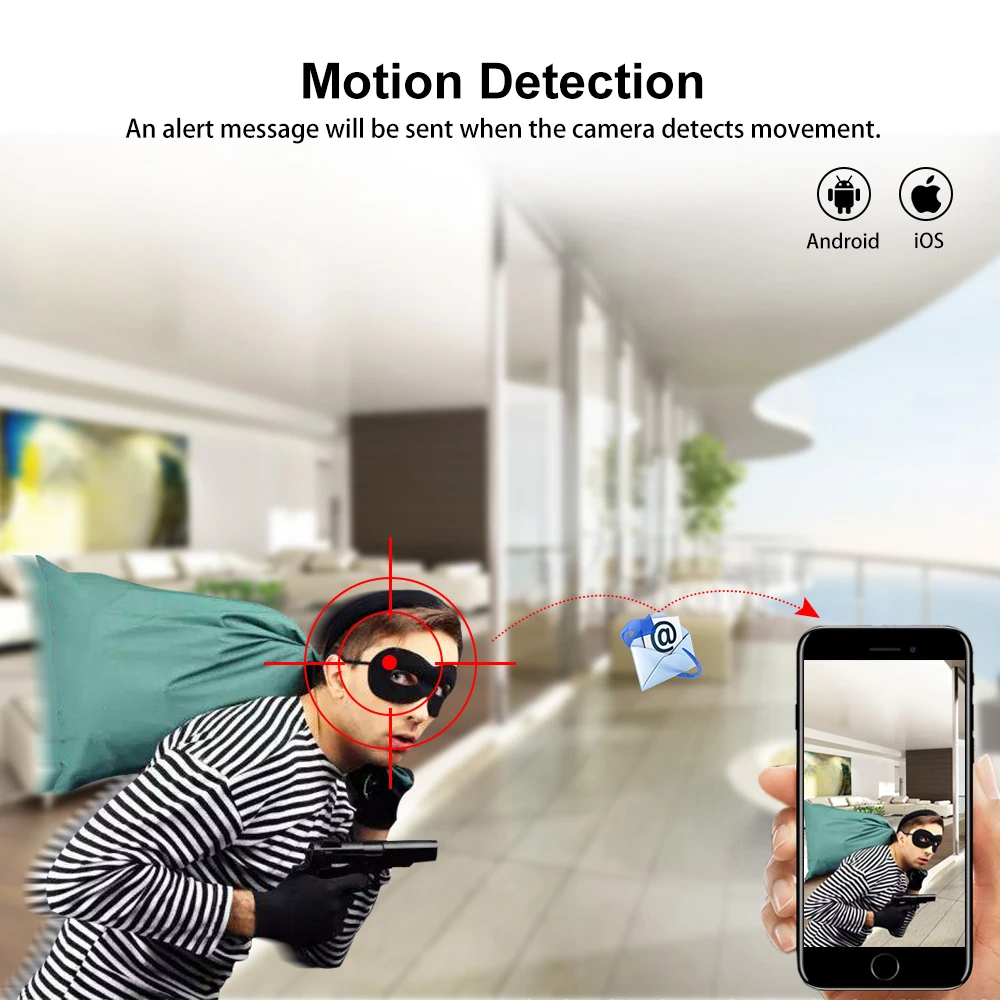 При обнаружении motion, камера может нажать сигнал тревоги в приложение или отправить фотографию на электронную почту. Затем вы можете проверить детали своевременно.
