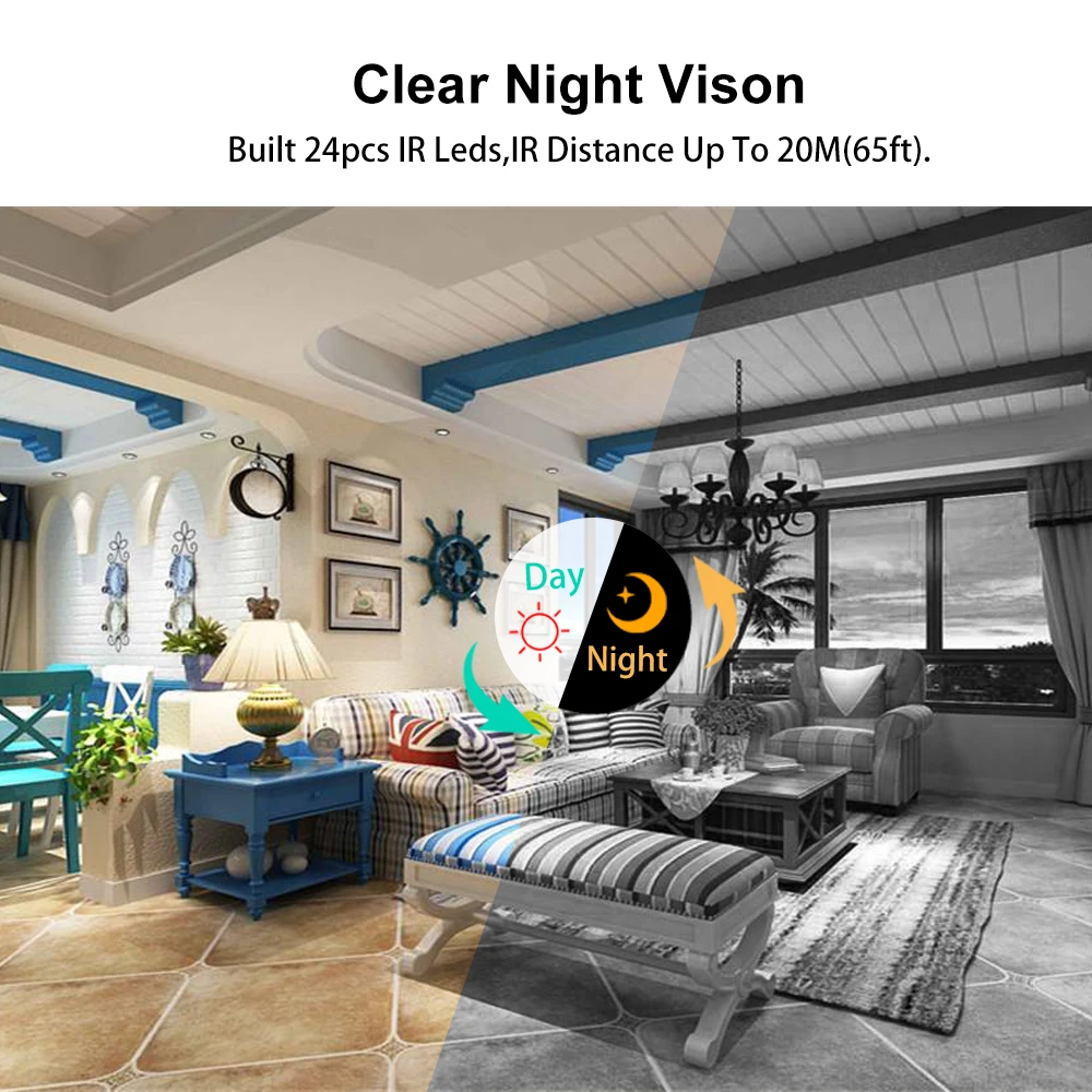 6) 24 ИК-светодиодов, 25 м ИК-расстояние для ночного видения