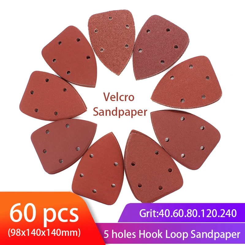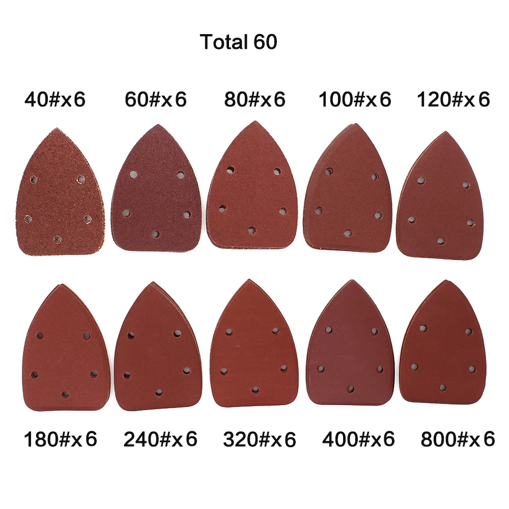 60 шт. шлифовальный станок для деталей мыши, наждачная бумага, треугольная шлифовальная бумага, крючок и петля, ассорти, абразивный инструмент из Grits 4060 80100120180 240