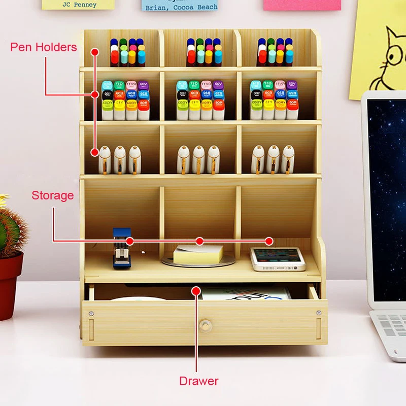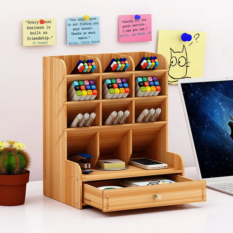 Настольный деревянный держатель для ручек, многофункциональный чехол для хранения карандашей, Канцтовары, для школы и офиса