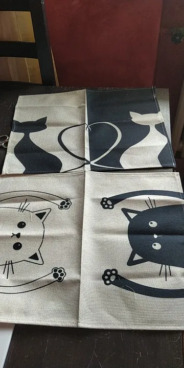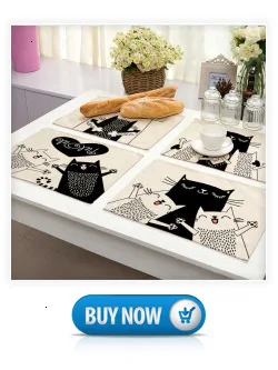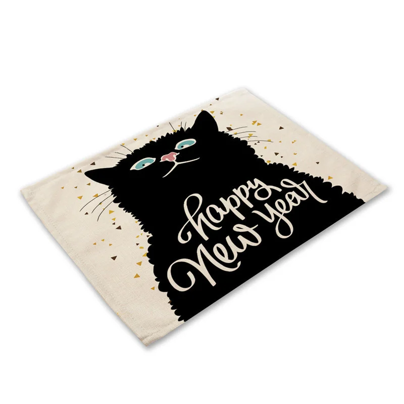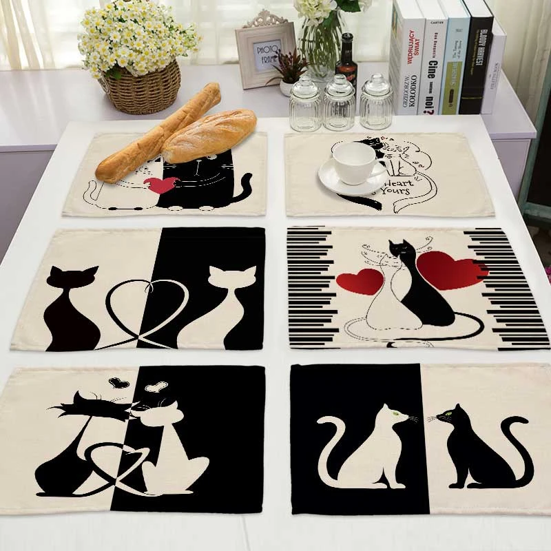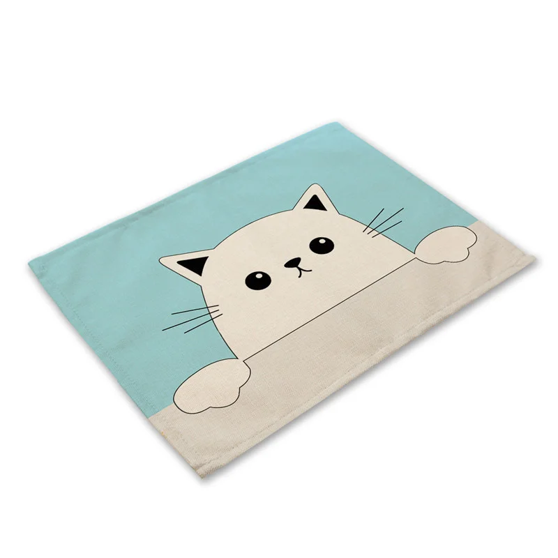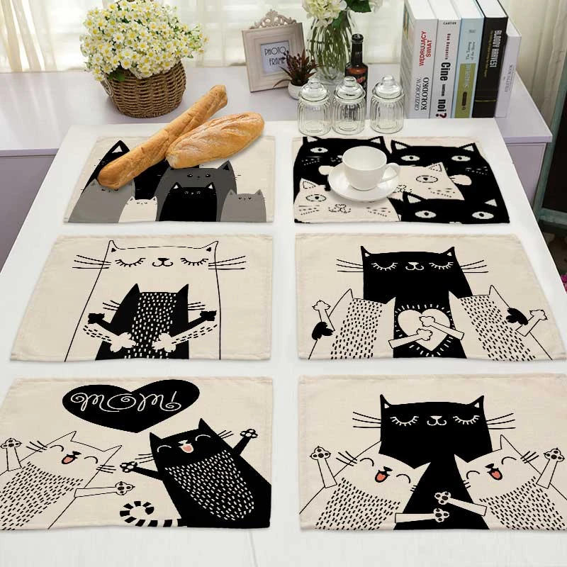 1 шт. Bkack, коврик из хлопка и льна с рисунком кошки, коврики для обеденного стола, подставка под чашку, коврик с рисунком, кухонная подстилка, домашний декор ML0016