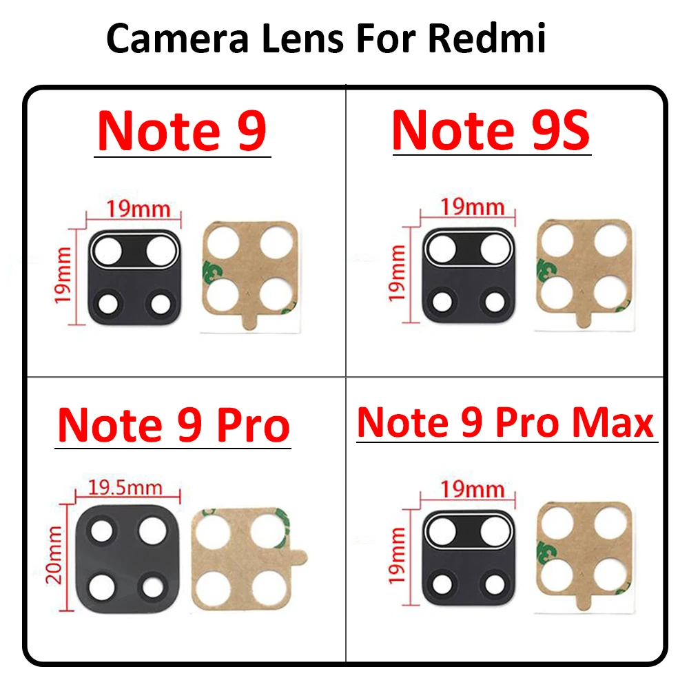 Объектив для задней камеры Xiaomi Redmi Note 9 Pro Max 9S 8 7 6 10 Pro 9T 5G 10T 10S, стеклянный объектив с клеем, 2 шт.