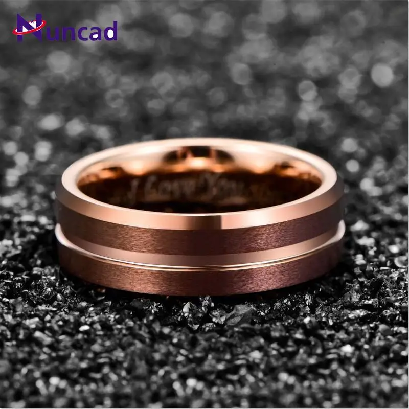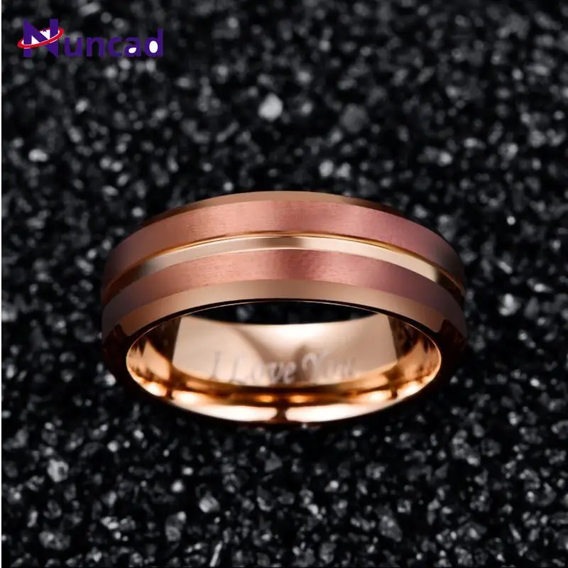 NUNACD 8 мм ширина вольфрамовое Карбидное кольцо коричневое покрытие + розовое золото Средний угол паза Вольфрамовая сталь мужское кольцо