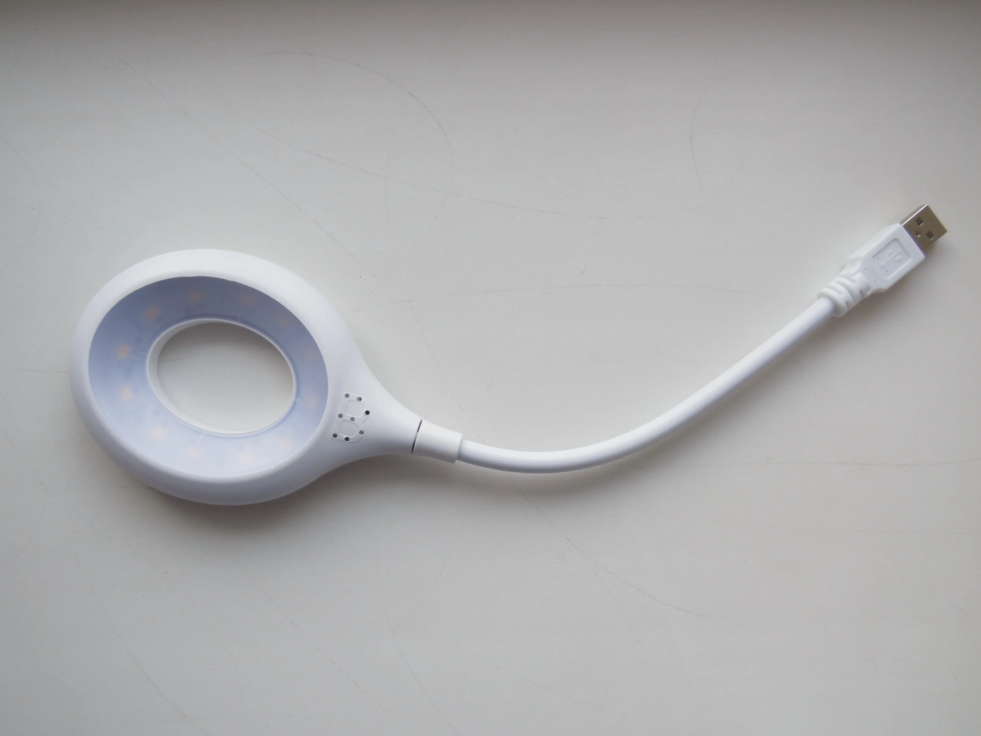 USB-лампа прибыла в отделение почты на 46 день со дня заказа в составе консолидированной посылки (Свердловская обл.). Заказывал за 215 ₽ во время 11.11, вместе с красным купоном AliExpress обошлась в 159,85 ₽. Цветовая температура составляет точно 4500К. Мерцания нет, проверял съёмкой в 960 к/с. Шейка у лампы длинная, хорошо гнётся и фиксируется. Головка лампы - пластик, шейка - резина. Благодаря многочисленным светодиодам и матовому рассеивателю свет довольно получается довольно мягкий и рассеянный. Воспринимается приятно. Светит ярко как для USB-лампы. С такой яркостью можно читать книги на продолжении длительного времени. Может осветить практически всю комнату, что для кого-то может показаться избыточным. Мне кажется, что для освещения клавиатуры ноутбука яркость тоже будет избыточна, но у меня нет возможности проверить, и, может, на самом деле яркость будет в самый раз.