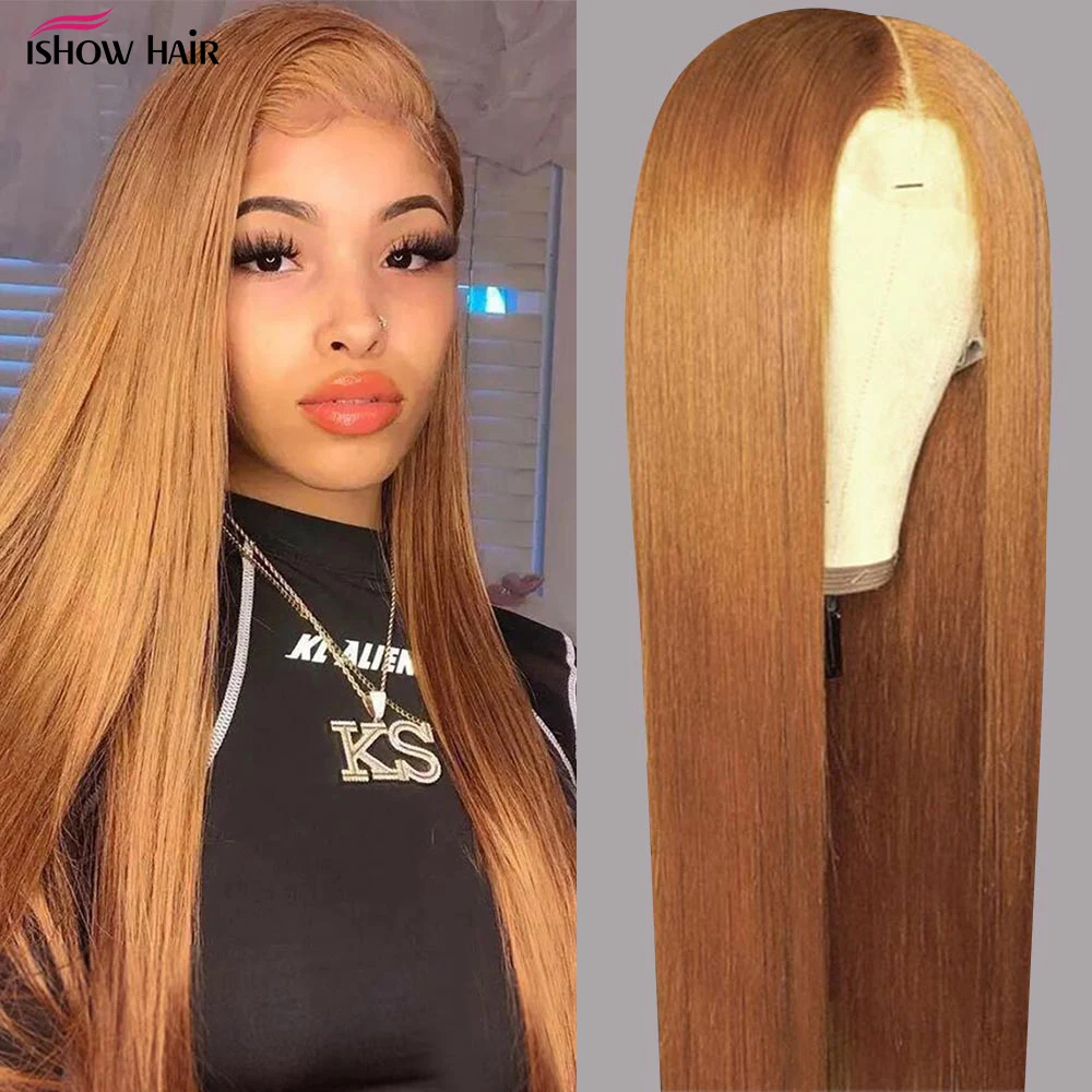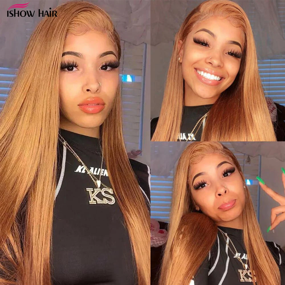 Парики Ishow, медовый блонд, с предварительно выщипанными коричневыми волосами, с эффектом деграде, прямые волосы