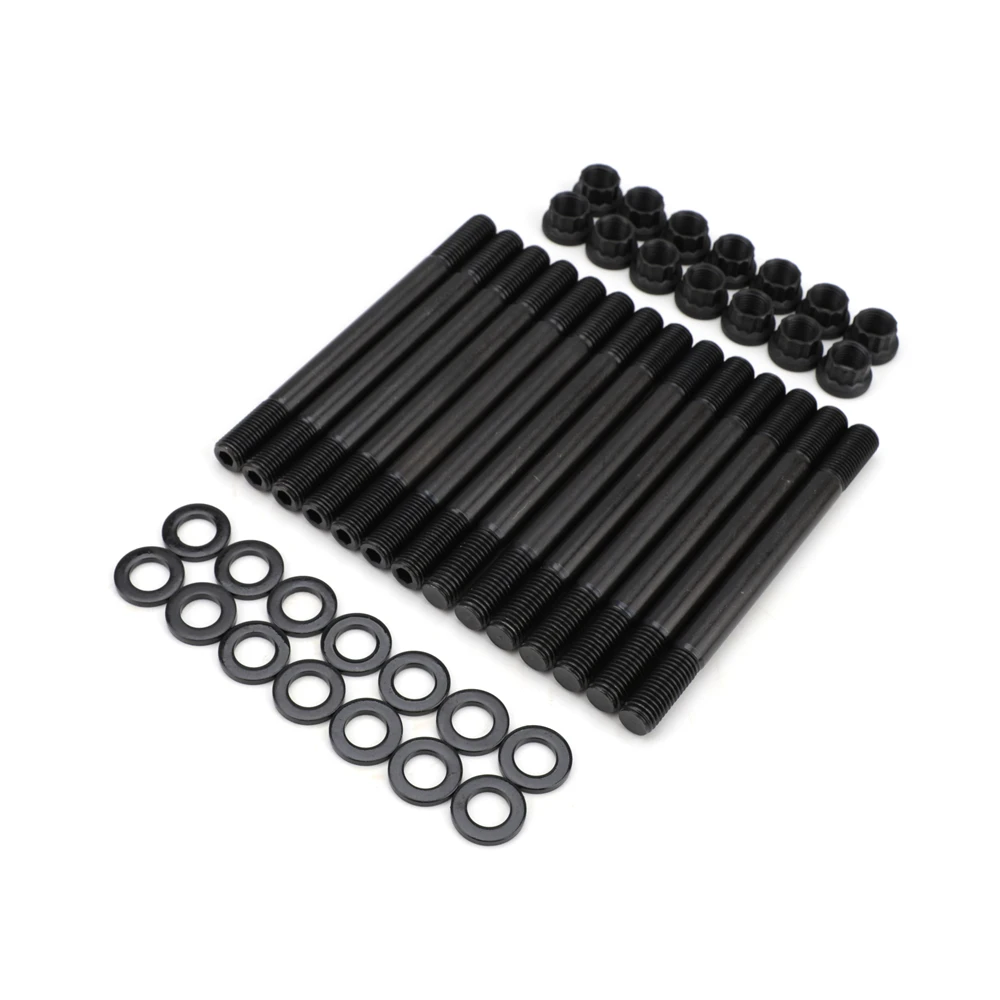Стиль застежки: шпилька Материал: 35CrMo Отделка: черный оксид Шайбы в комплекте: Да Прочность на разрыв: 220000 PSI Количество: продается в комплекте Используется ведущими профессиональными производителями двигателей во всех видах гонок Шпильки делают прокладку и выравнивание головки цилиндра защелкой Все шпильки термообработаны и имеют скрученные нити 35CrMo оценено лучше, чем качество самолета