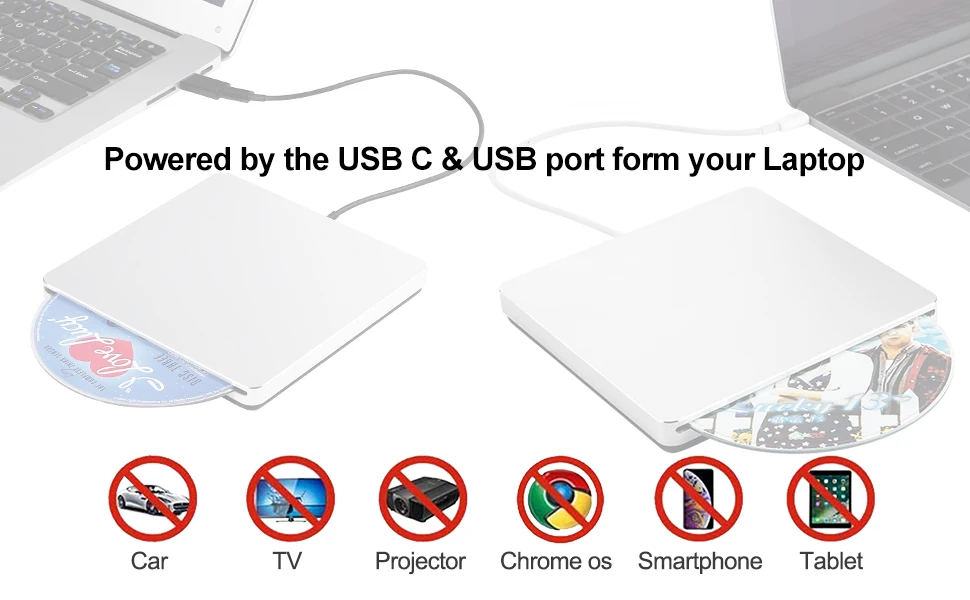 Внешний DVD-привод для горелки, USB 3,0Type-C оптический привод, Тонкий Слот для CDDVD +-RW конфорка, проигрыватель USB C Superdrive для Mac Window
