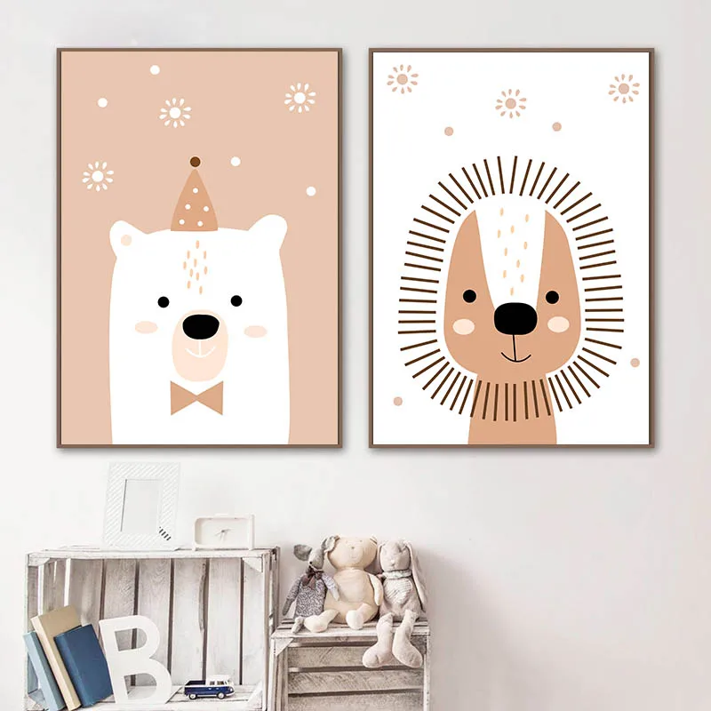 Настенная картина с лесными животными, холст для детской комнаты, картина с жирафом, принт в скандинавском стиле, детская декоративная картина, декор для детской спальни