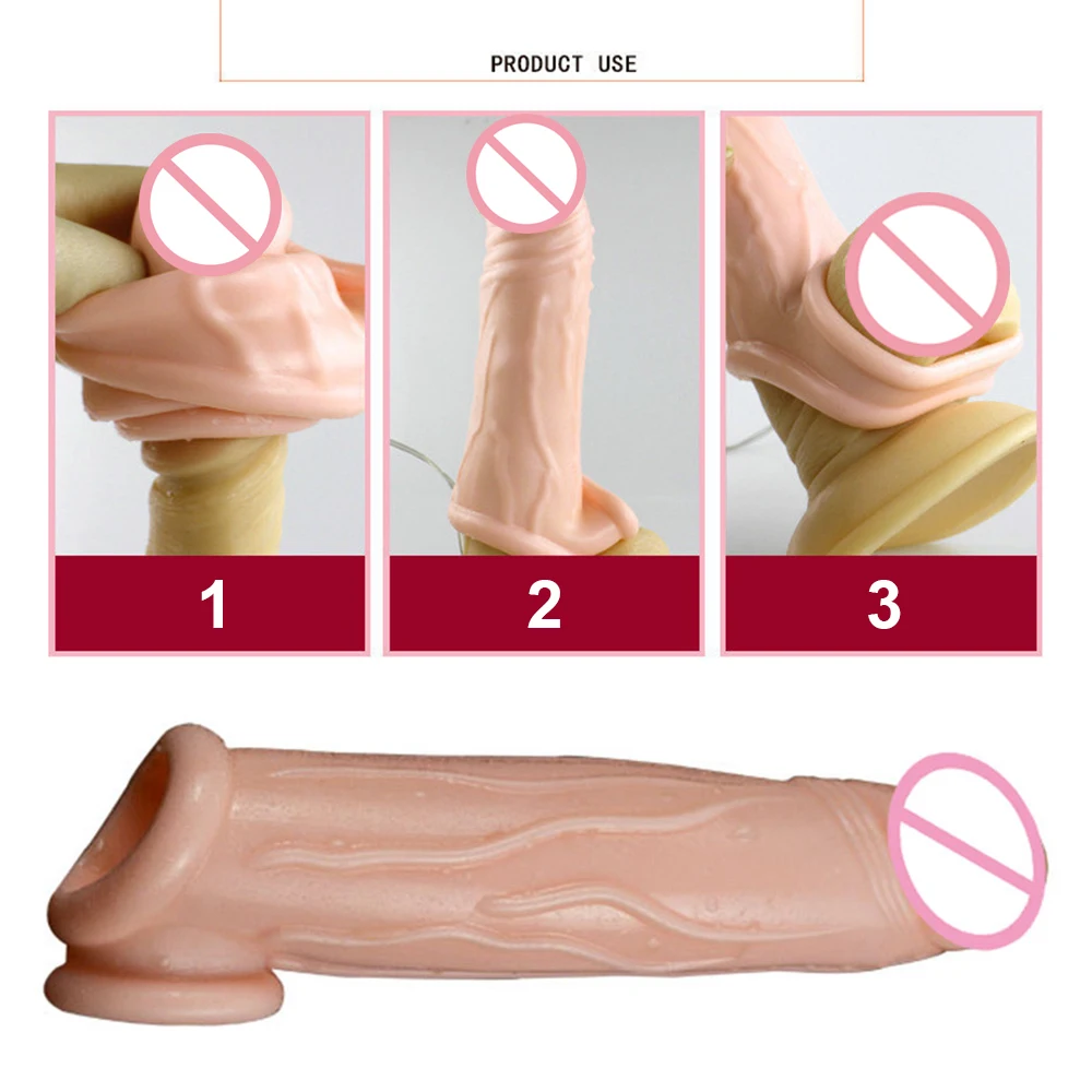 Многоразовые презервативы для увеличения пениса удлинитель фаллоимитатора мужчин, кольцо на член с временной задержкой, имитация прочной головки