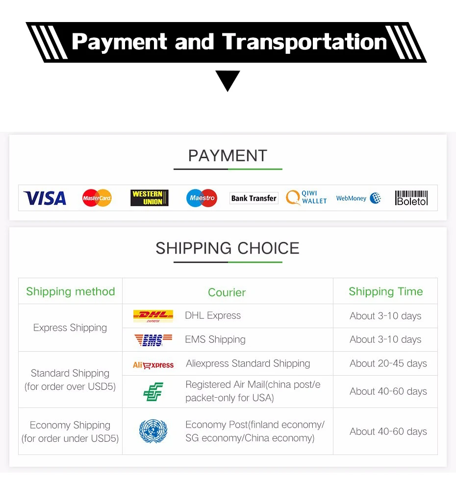 1. Если есть проблемы с нашими продуктами, сначала свяжитесь с нами, мы можем повторно отправить или вернуть деньги.2. Если вам нужен возврат, пожалуйста, свяжитесь с нами в течение 30 дней.3. Цена покупки будет возвращена, но стоимость доставки не возвращается, если покупатели покупают продукты по ошибке, покупатели должны позволить себе возвратную стоимость доставки.