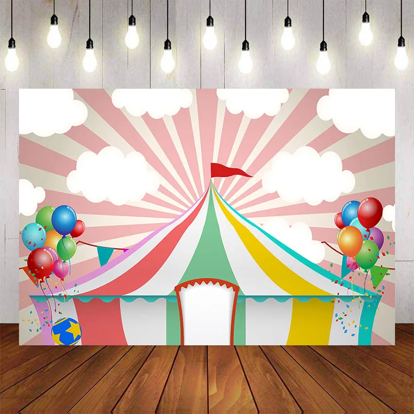Фон для фотосъемки Mehofond с изображением цирка палатки баннера облака воздушных шаров дня рождения фотосессия Фотостудия