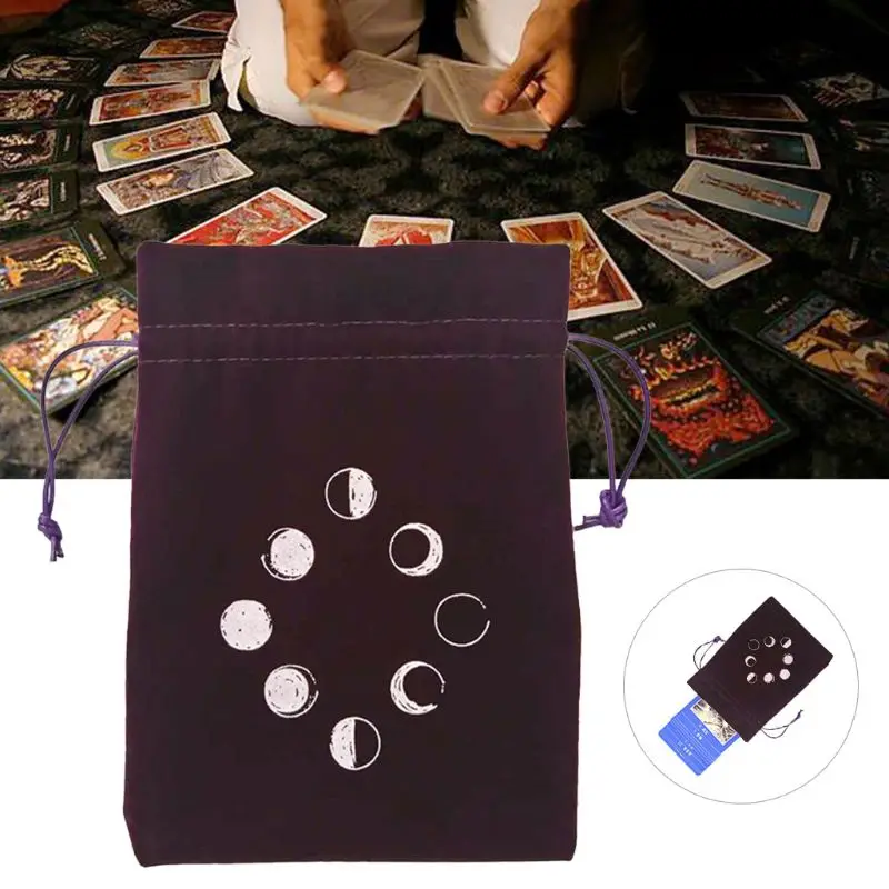 Бархатная сумка для хранения Таро, сумка с изображением фазы Луны и оракула, сумочка для гадания карт, настольных игр, игрушек, домашних ювелирных изделий, мини-пакет на шнурке