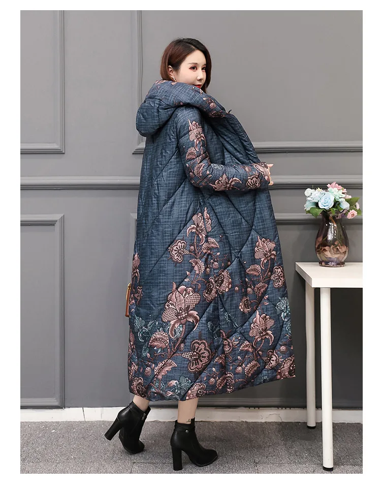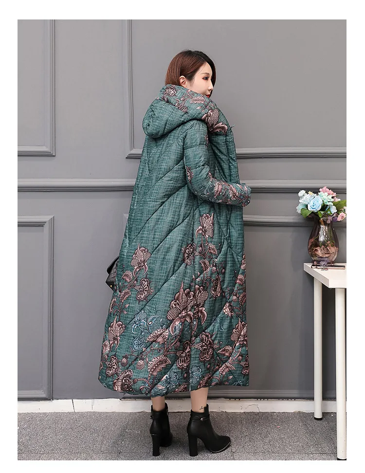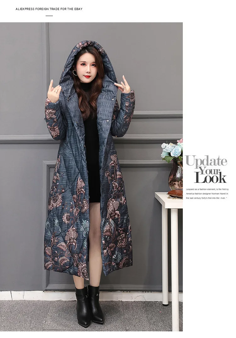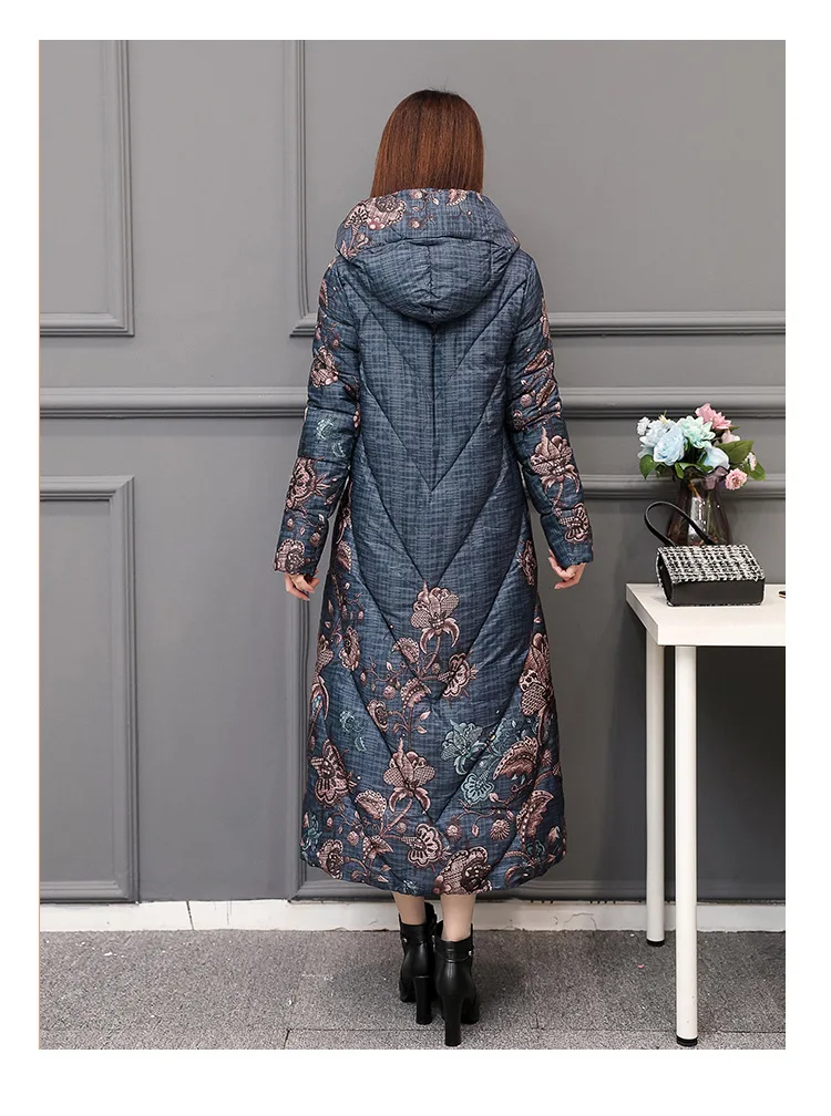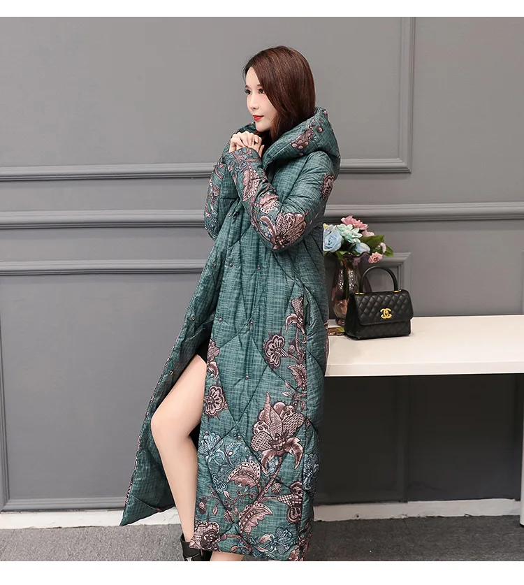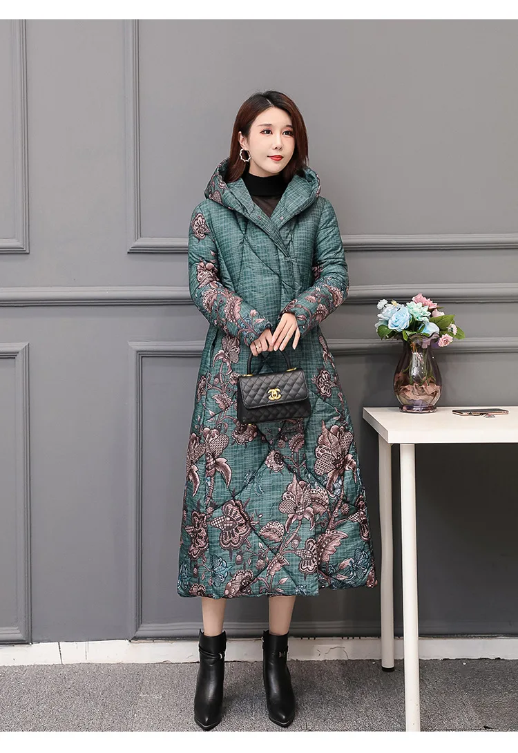Длинная теплая зимняя пуховая куртка для женщин с капюшоном и принт...