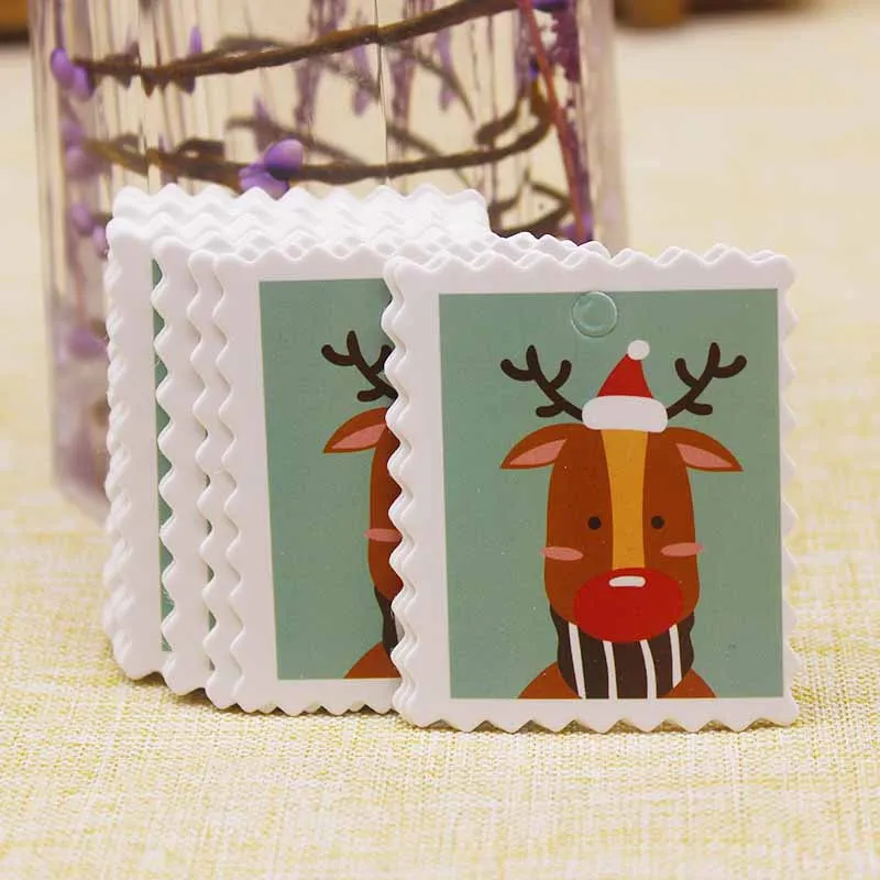 100 шт., новогодниеНовогодние белые бирки для упаковки подарков